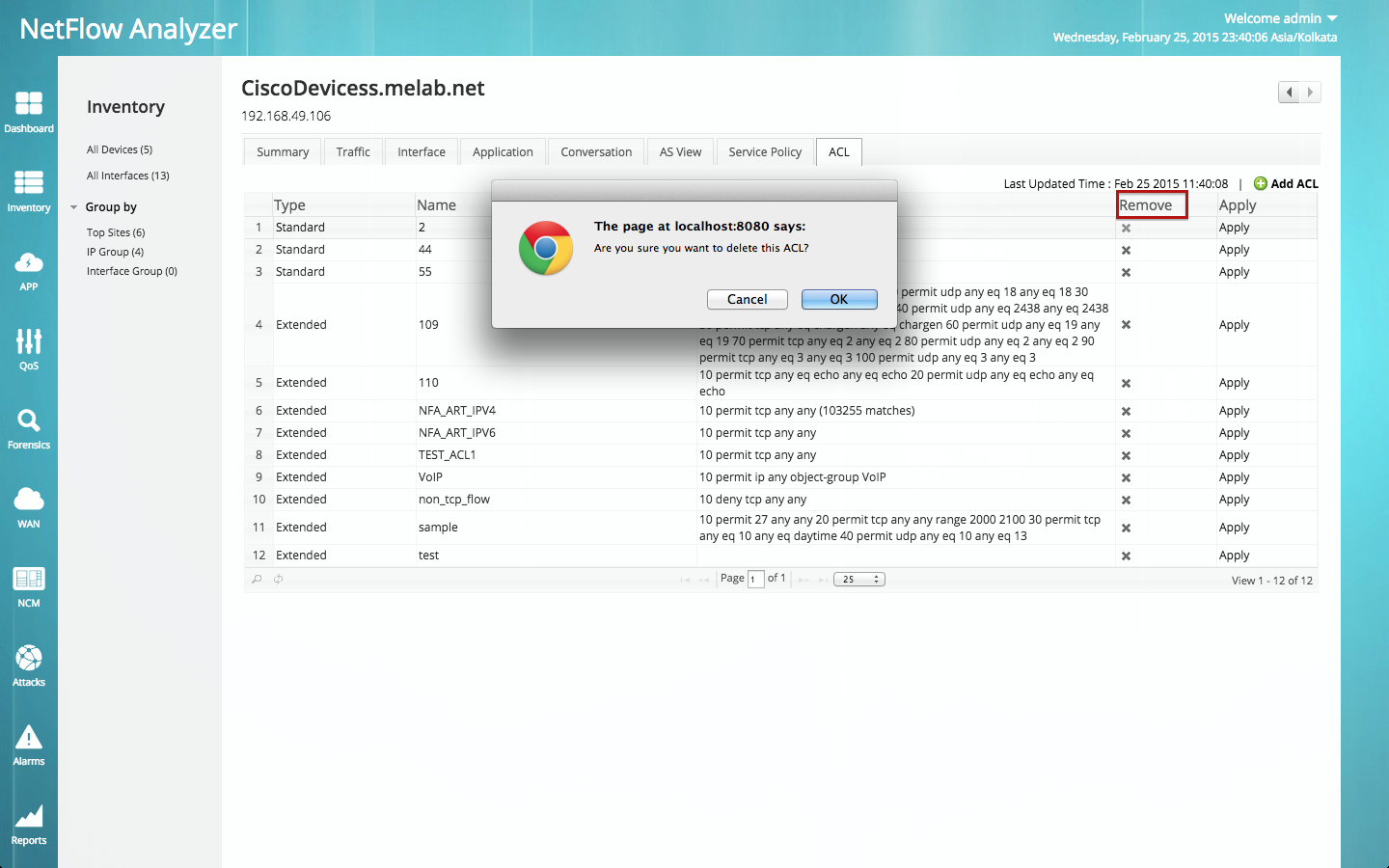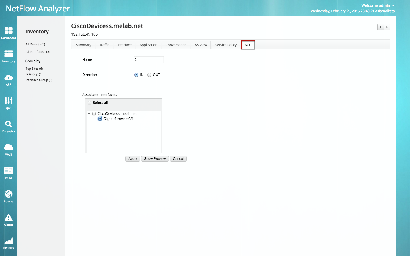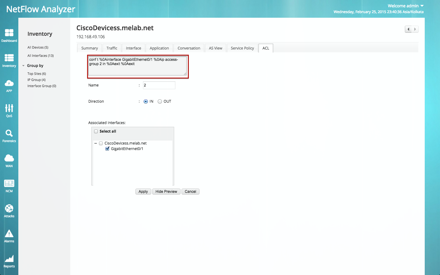 NetFlow Analyzer现在允许您重新配置应用程序流量和ACL输出You Tube流量。现您可以配置QoS和ACL,以便基于来源和目标地址、端口和协议为第4层应用程序筛选路由器流量。它允许明确许可的数据包,拒绝其他所有数据包。您可以筛选不受信任的来源地址,让它们没有机会进入并通过攻击影响您的应用程序。因而,为应用节省您的带宽并可为您的公司带来盈利。