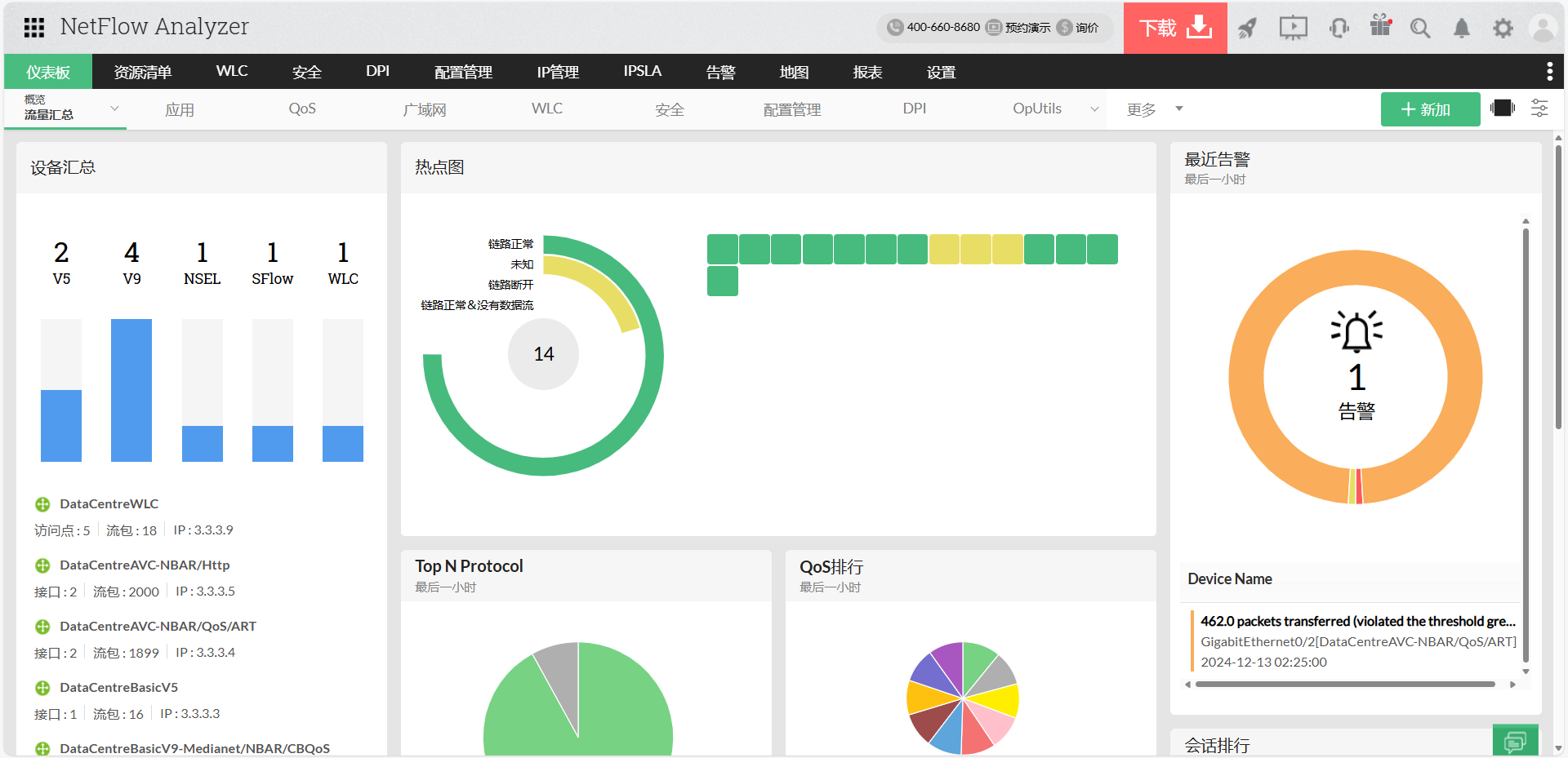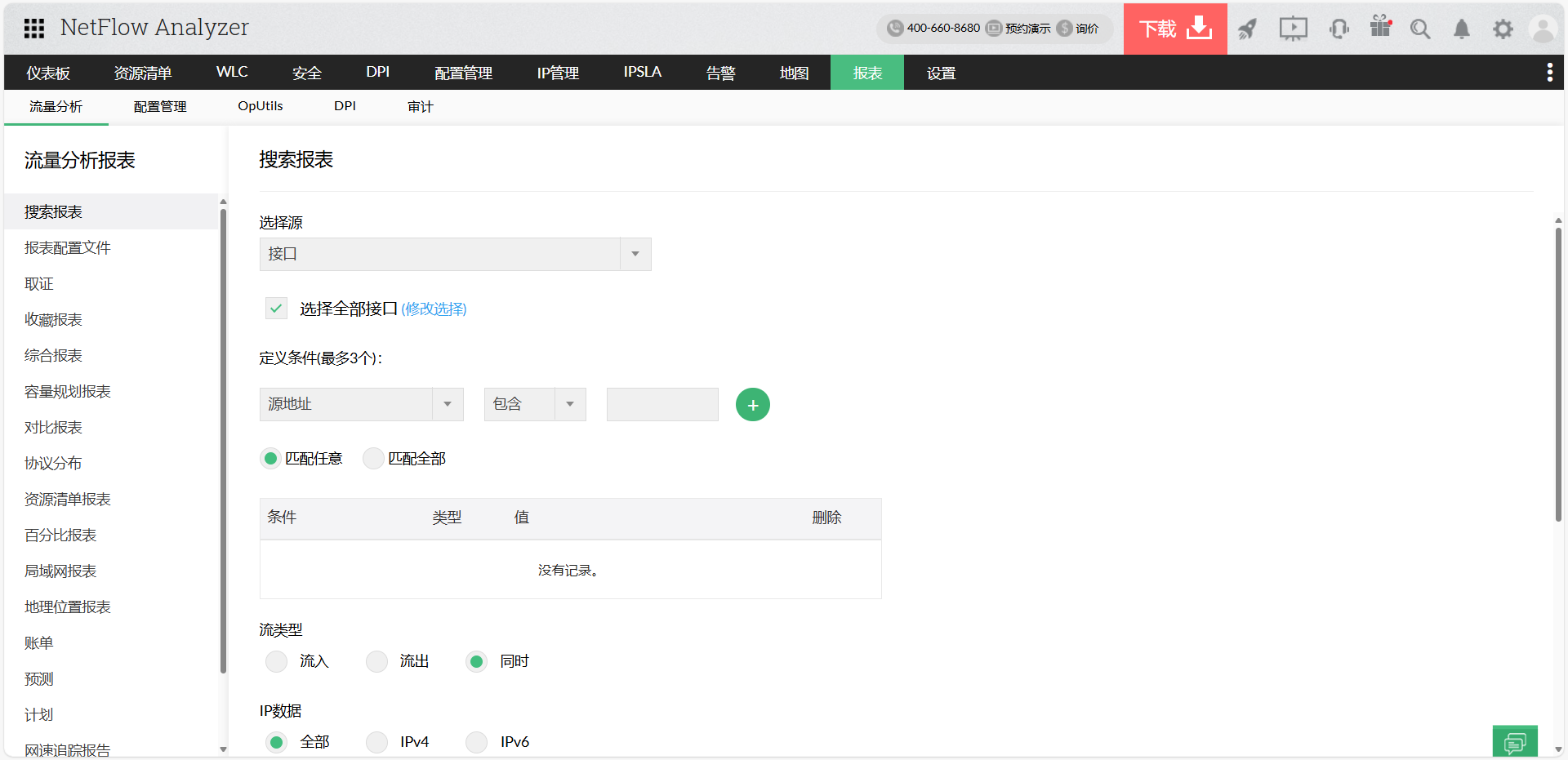 使用NetFlow分析器的实时交通图和报告,您可以: