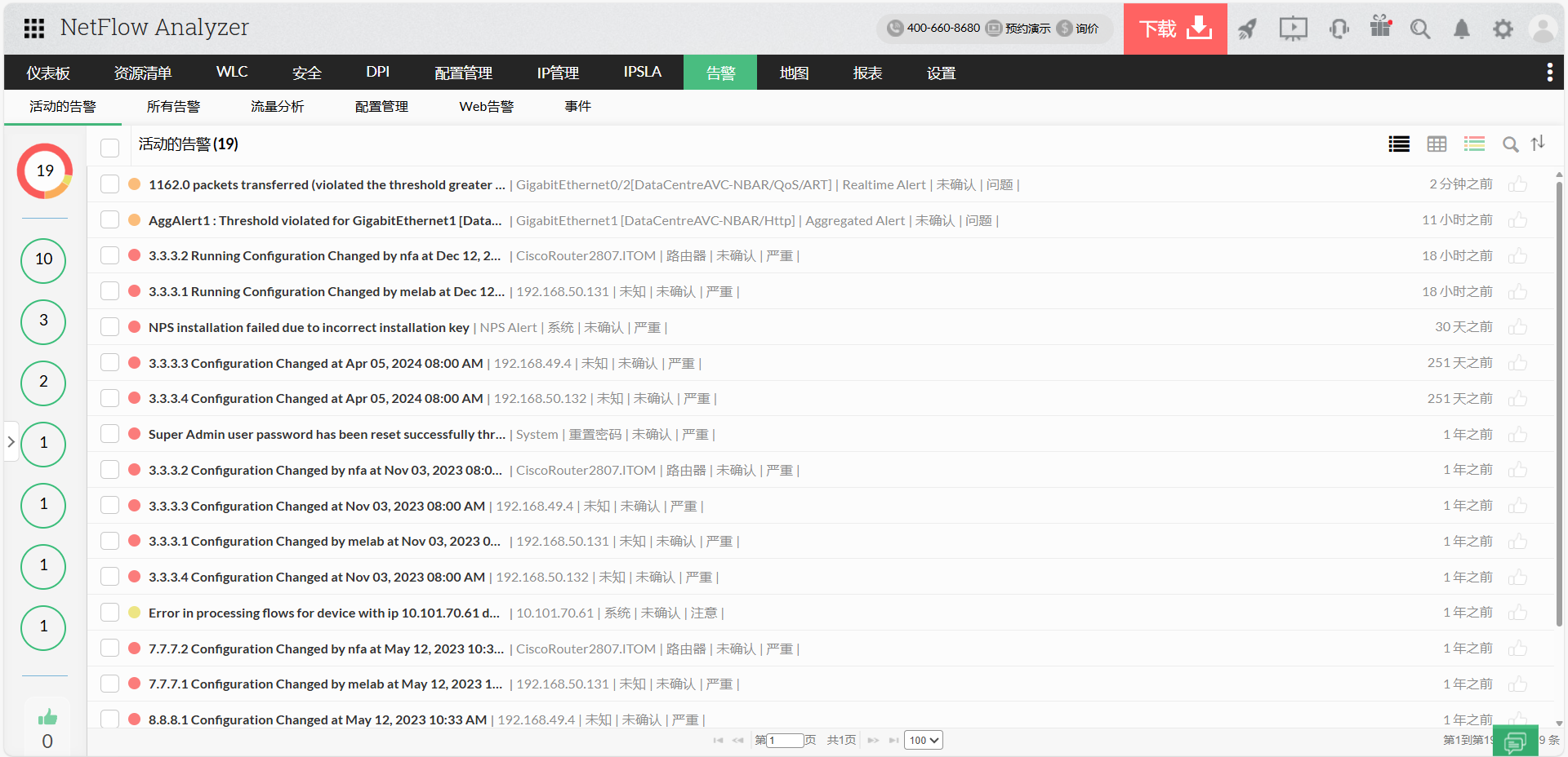 在NetFlow Analyzer中基于阈值的警报通知您每当网络中出现流量尖峰或异常流量时。设置多层次的阈值,并得到通知时,带宽使用率高,在网络上与我们的思科ASA流量监测工具。
