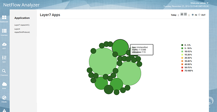 为了弥补这一差距,思科想出了Cisco AVC(应用程序可见性和控制)技术,它提供应用程序级的分类,监控应用程序性能以帮助IT团队获取所需的网络流量可见性并优化现在受到NetFlow Analyzer支持的业务关键型应用程序。