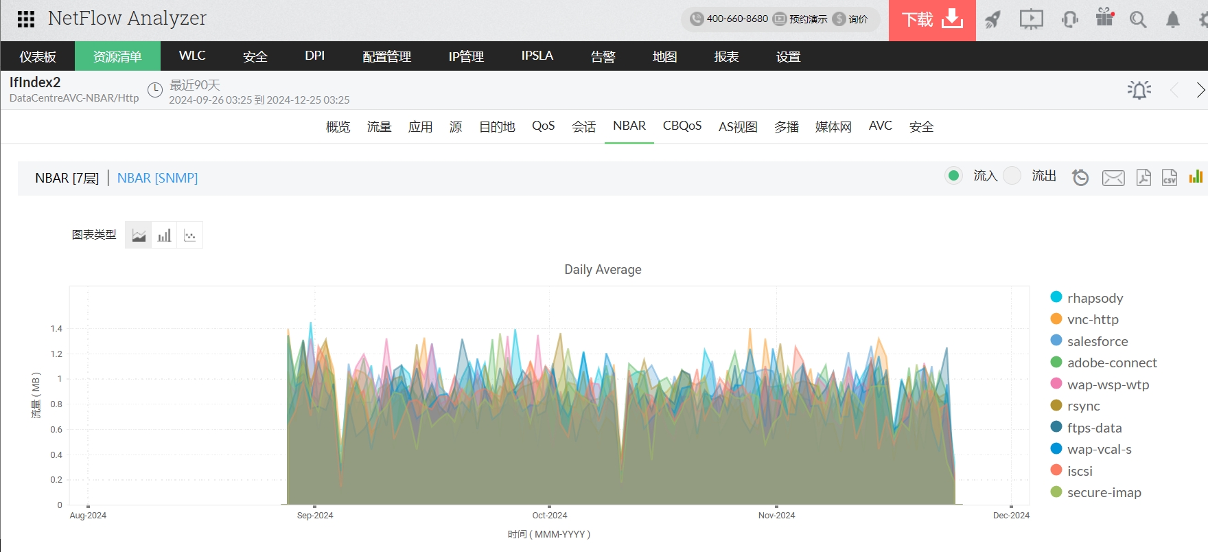 通过应用程序级带宽监控来跟踪哪个应用程序导致流量激增并停止其他业务运营。借助 Cisco NBAR 技术,您可以检测使用动态端口的应用程序,例如社交媒体或耗尽网络带宽的高质量流应用程序。