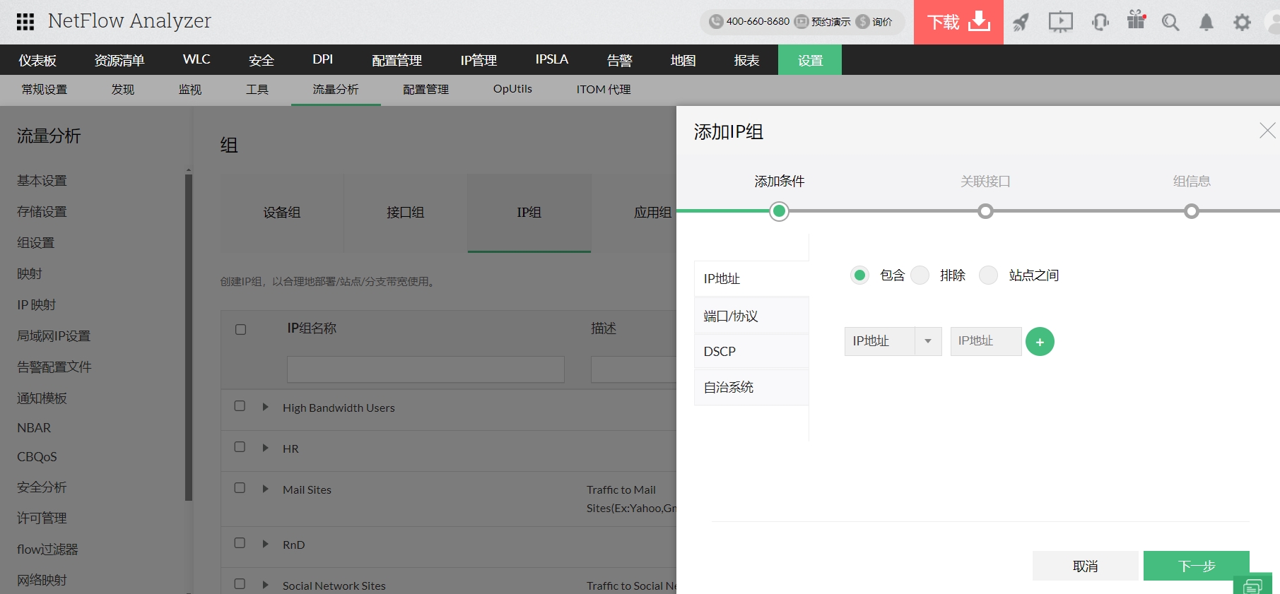 ManageEngine NetFlow Analyzer能够监控部门网络行为并为这些部门执行流量分析。这些部门可以由IP组使用N/W,将属于特定部门的范围连在一起甚至是单个IP地址。