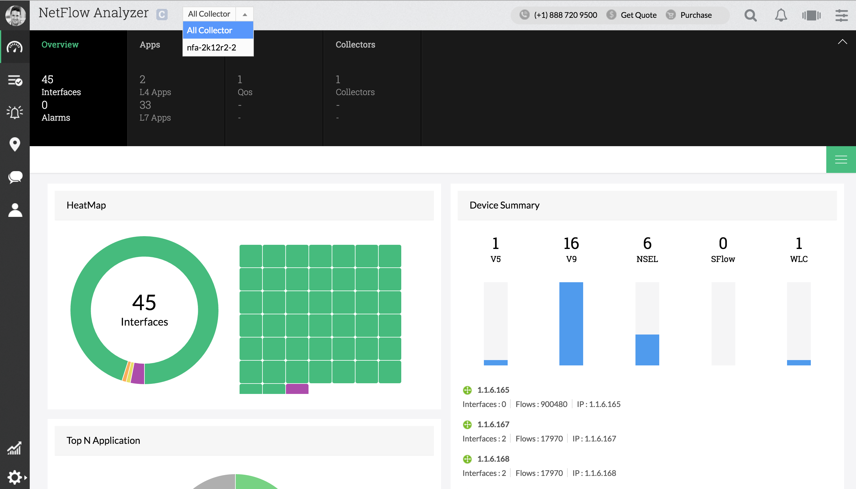 Distributed Edition是一种可扩展的带宽监控、流量分析和网络取证工具,用于监控您的网络。它依赖于从交换机和路由器接收的流量数据(NetFlow、sFlow等),并满足具有分布式网络的大型企业的需求。它可以扩展以监控数万个接口或交换机端口。NetFlow Analyzer Distributed Edition可以更快地对网络事件进行快速故障排除,更有效地跟踪蠕虫和安全违规,并以更加明智的方式帮助您规划网络升级。它还可以用于根据您可以设置的阈值来提醒您,以限制网络中的带宽使用。除此之外,您还可以借助Cisco Medianet等监控QoS、SLA、特定于富媒体流量的信息。很多NetFlow Analyzer的用户证明了这一点!高水平的自动化和直观的报表功能可确保您轻松了解和深入了解您的网络。