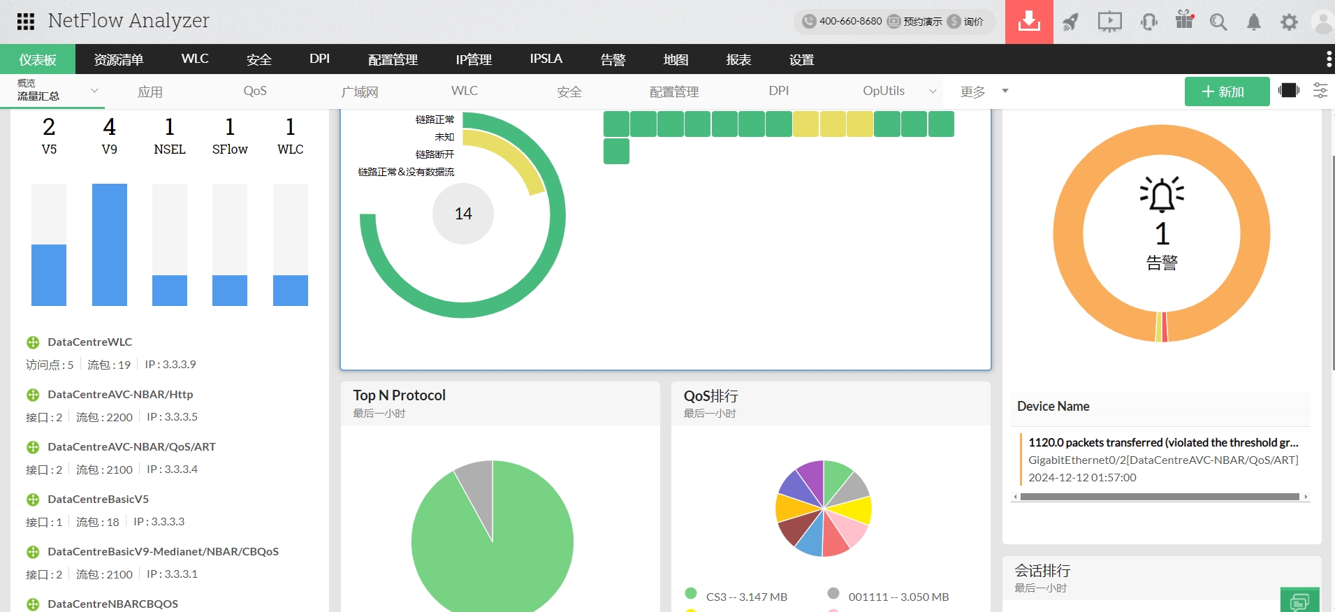 网络流监控还有助于设置QoS策略,以确保业务关键型应用程序获得足够的带宽。使用我们的预定义和自定义流导出方法,可以减少配置时间,增加对网络的监视时间。