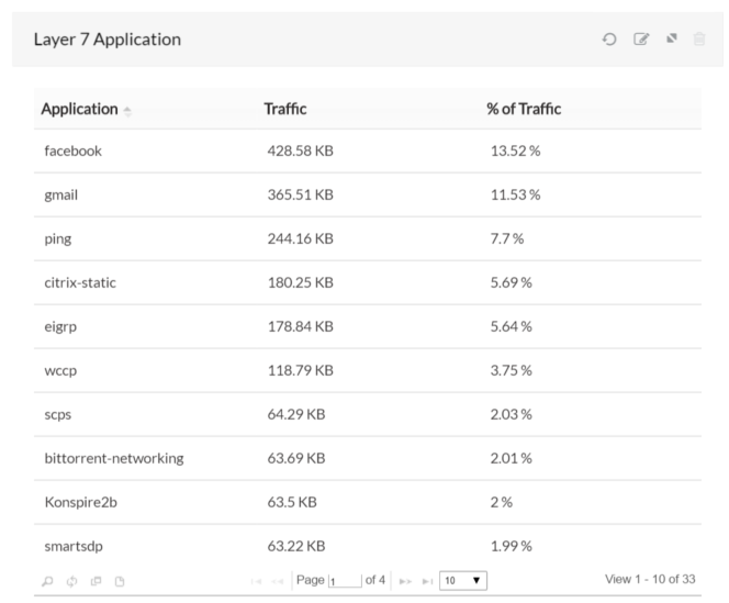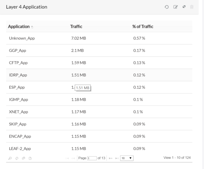 此视图提供了前10个4层和7层应用程序及其流量利用率的信息。