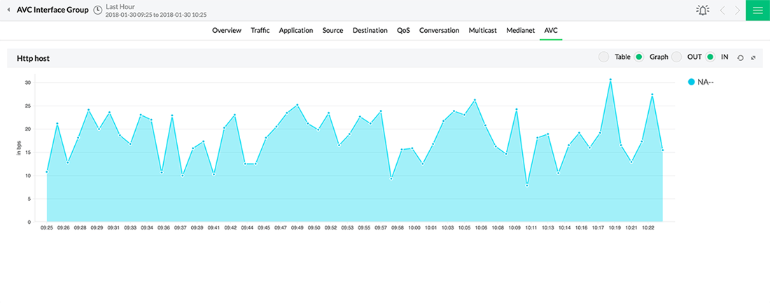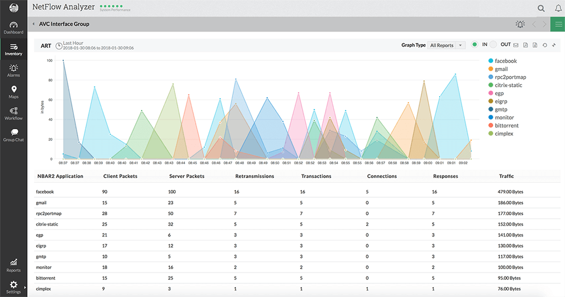 ART指的是应用程序响应时间,ART报表根据响应时间帮助识别网络中大部分潜在的应用程序。报告显示了客户端包、服务器包、事务、重传、新连接、响应和流量。此外,深入每个应用程序,可以通过绘制响应时间图来描述客户体验。QoS和ART将仅在支持AVC的设备的设备和接口列下动态显示。使用这个报告,网络管理员可以很容易地定位问题。如果问题出现在客户端网络上,管理员可能会加强边缘路由器上的一些强QoS策略,以对业务关键型应用程序流量进行优先级排序。如果延迟是由于应用程序或服务器网络造成的,云服务提供商可能不得不调整服务。