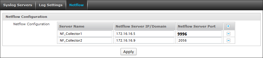 进入日志 & 报表 > 配置 > Netflow,指定收集器名称、IP/域和端口,如下所示。