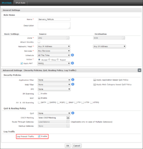 进入防火墙 > 规则 > 规则,点击所需的规则。启用“日志防火墙流量”并点击“OK”。