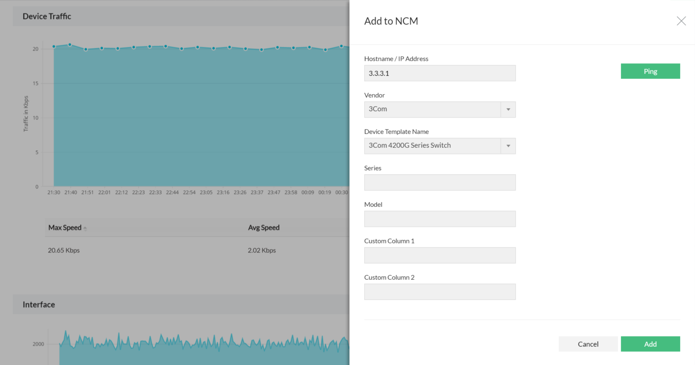 您可以在NCM配置备份、确认和更改管理选项附加插件中直接添加NetFlow Analyzer中发现的设备,用于配置备份。