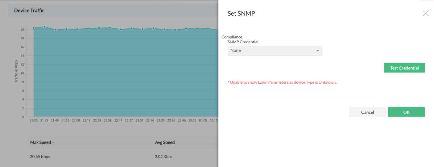 选择设备上配置的正确SNMP凭证。 ->点击测试凭证-> 将得到测试的状态。