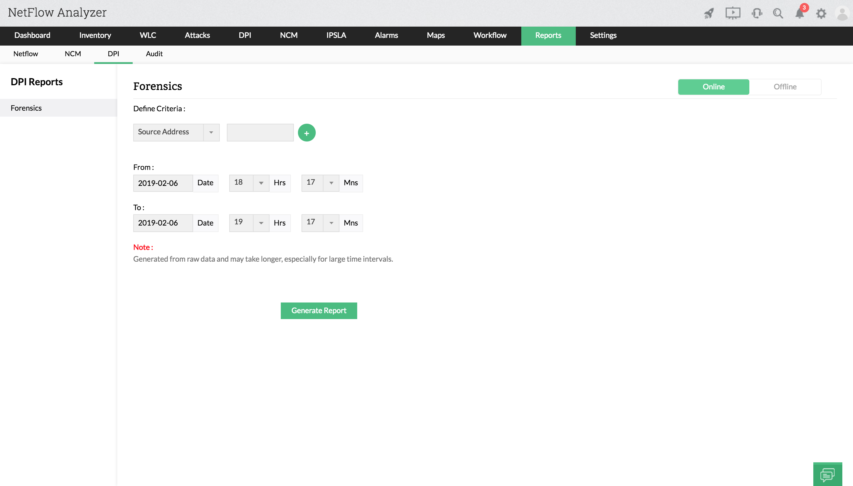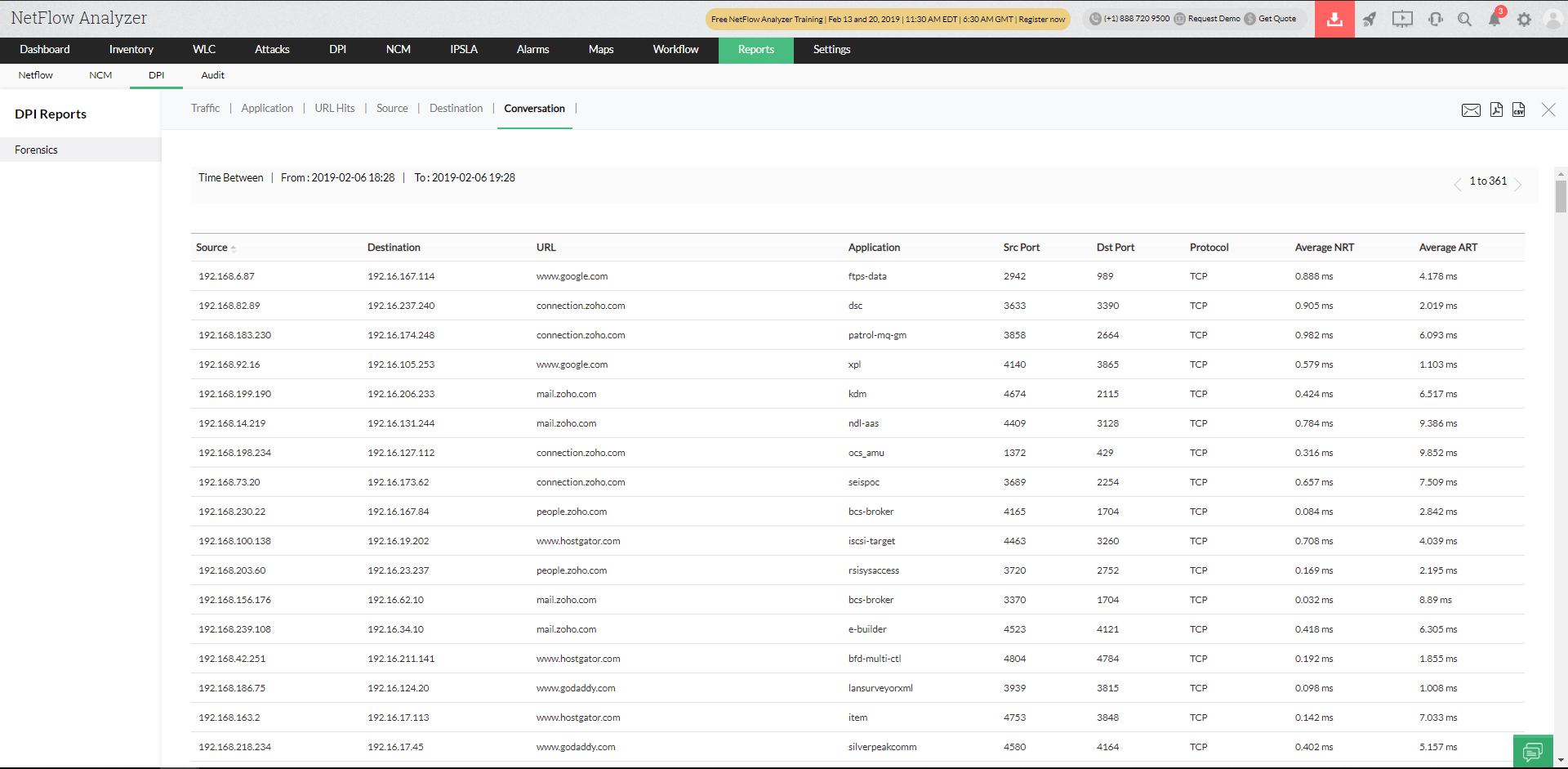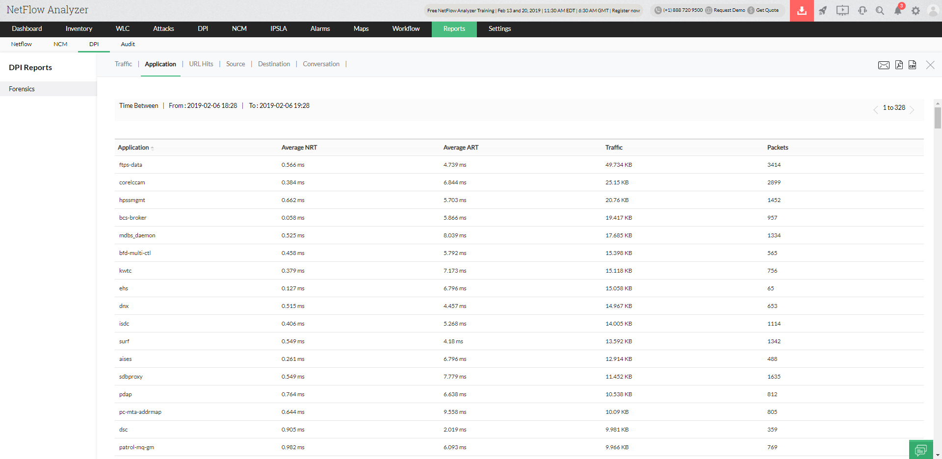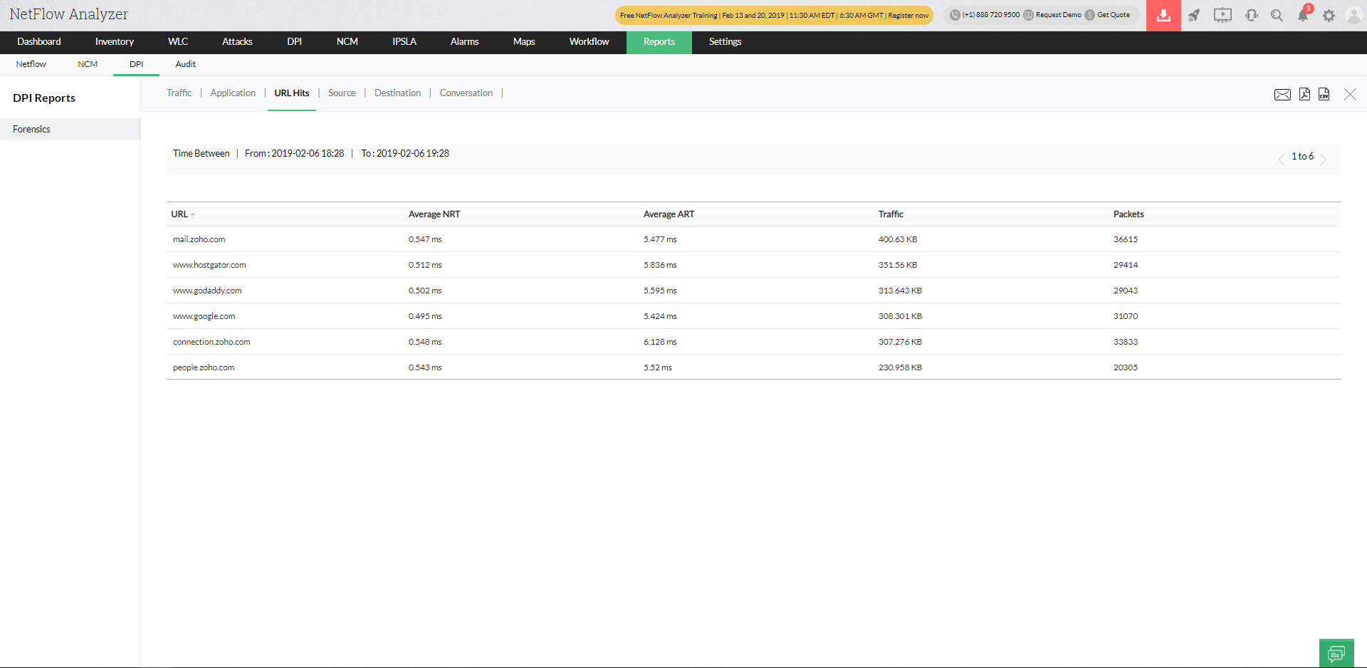 DPI报表基于时间和定义的条件。DPI报表主要集中于3个指标,URL、NRT和ART。