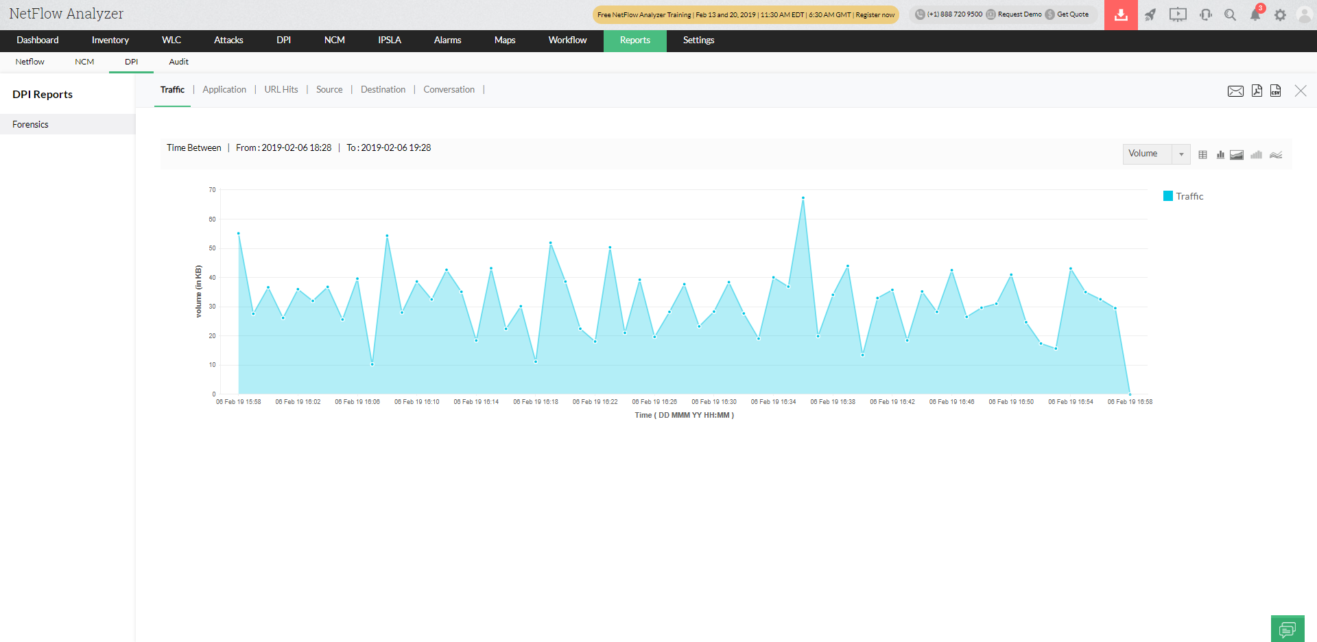 生成报表后,您可以根据流量、应用程序(4层)、URL点击数、源、目的和会话来查看报表。