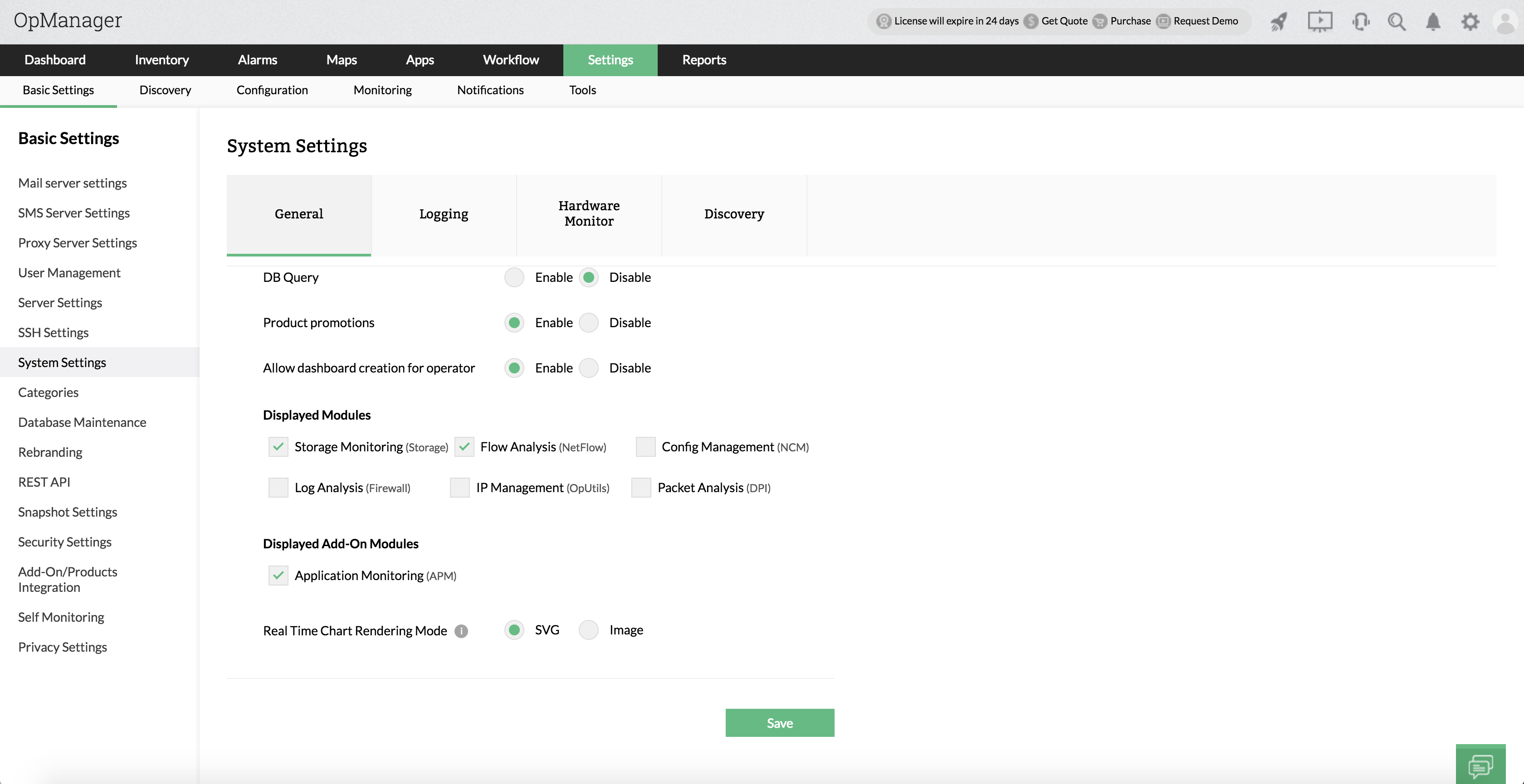 步骤2: 在通用选项卡下的显示模块,选择Flow分析(NetFlow)。