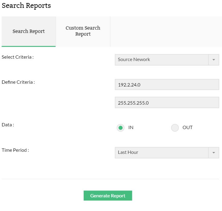 “搜索报表”是NetFlow Analyzer提供的全局搜索报表,使您可以设置条件、根据NetFlow Analyzer中监控的所有管理的接口生成报表。搜索报表数据来源于NetFlow Analyzer收集的聚合数据。