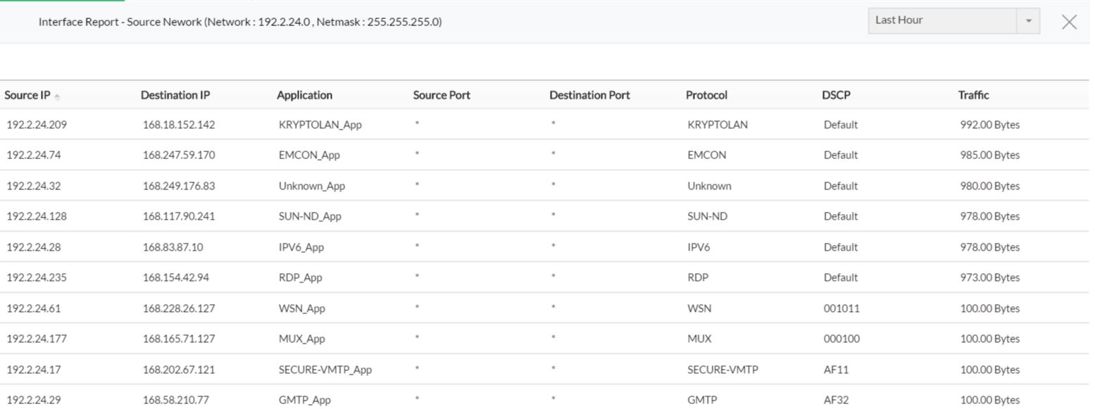 例如,您可以提供如下的源网络条件,以生成最近一小时时间段的流入方向流量的报表: