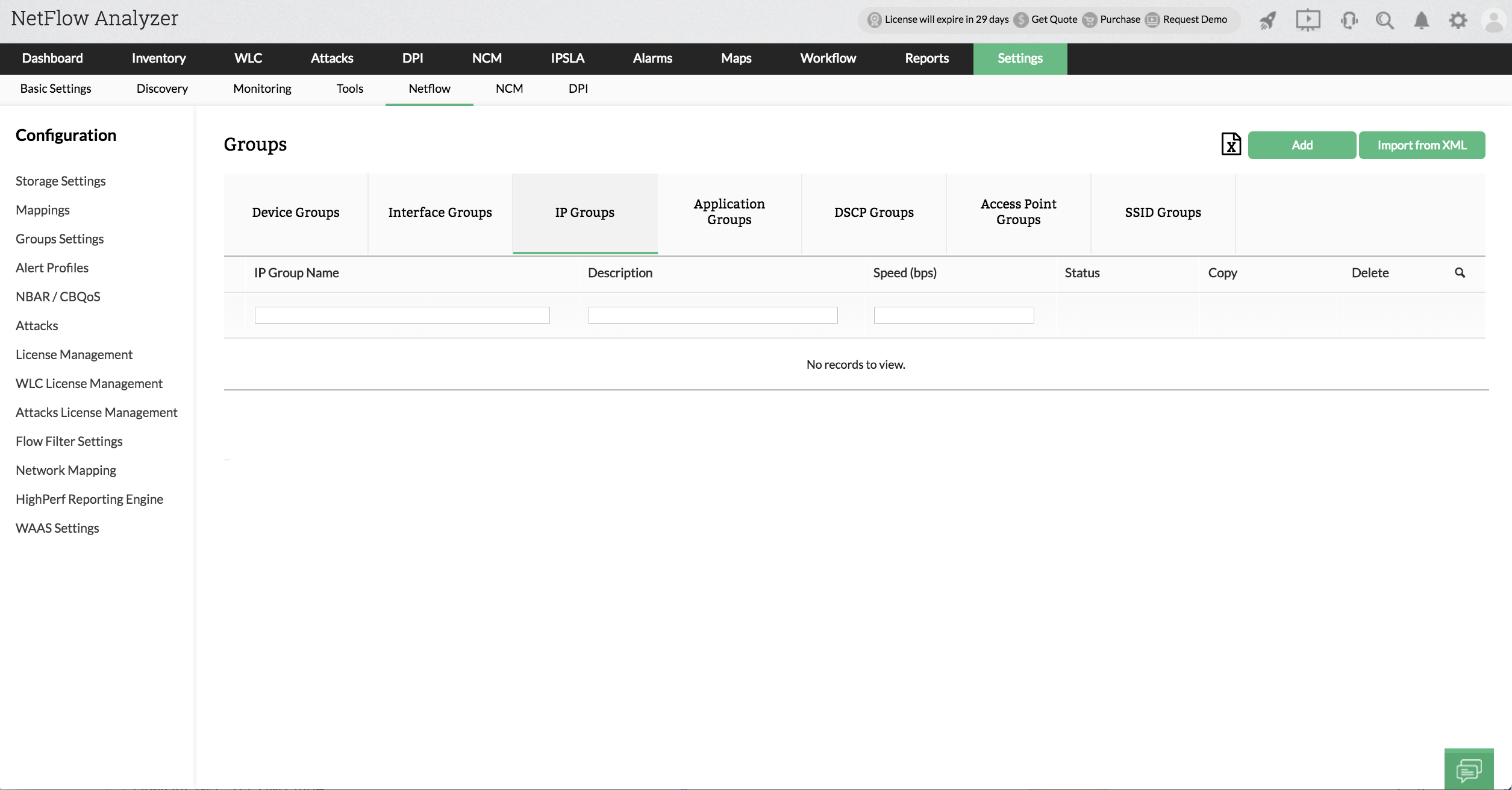 - 进入设置 > NetFlow > 组设置 > IP组。