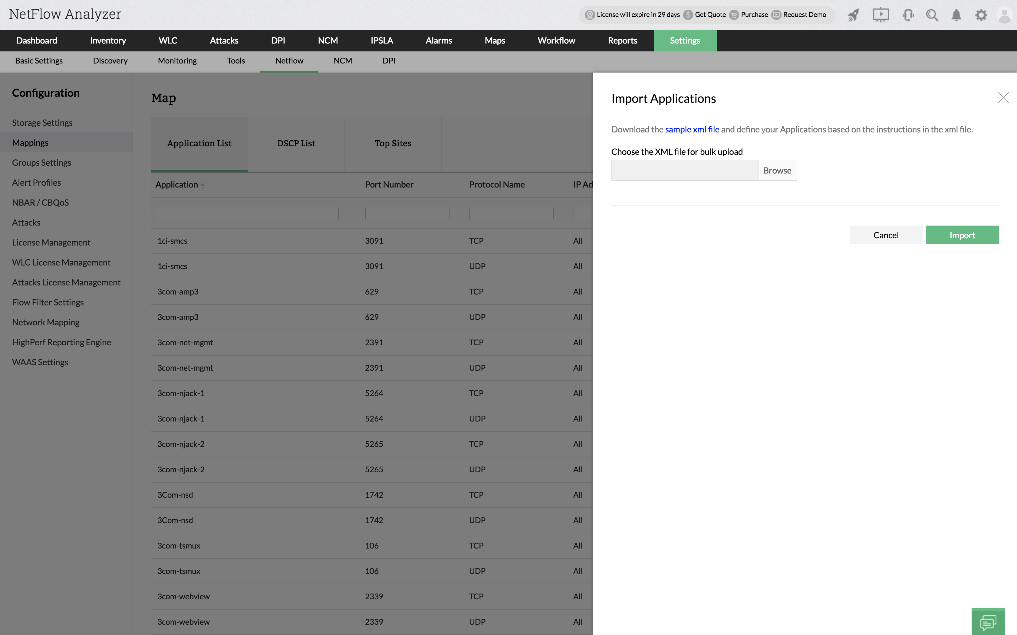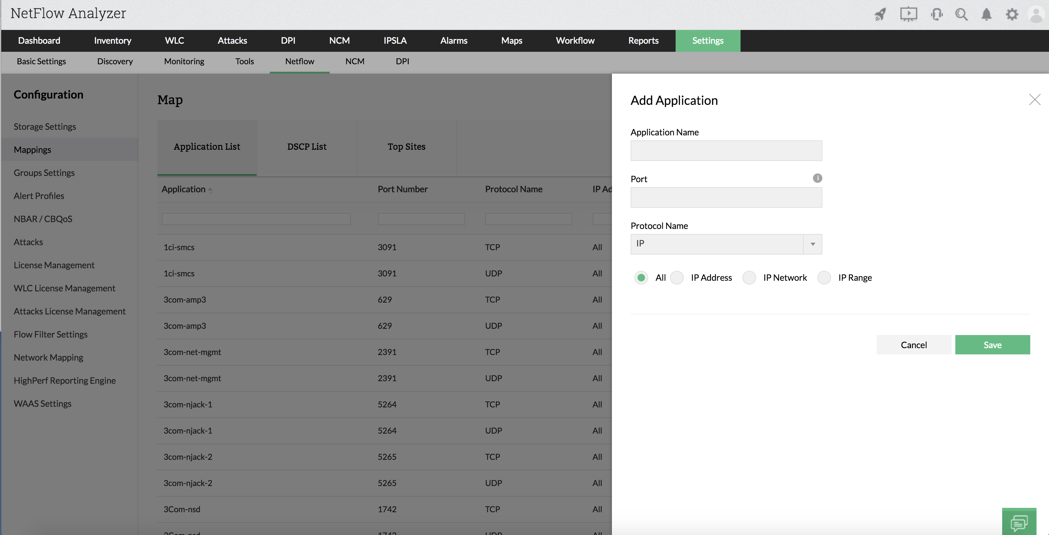 - 进入设置 > NetFlow > 映射 > 应用程序列表。