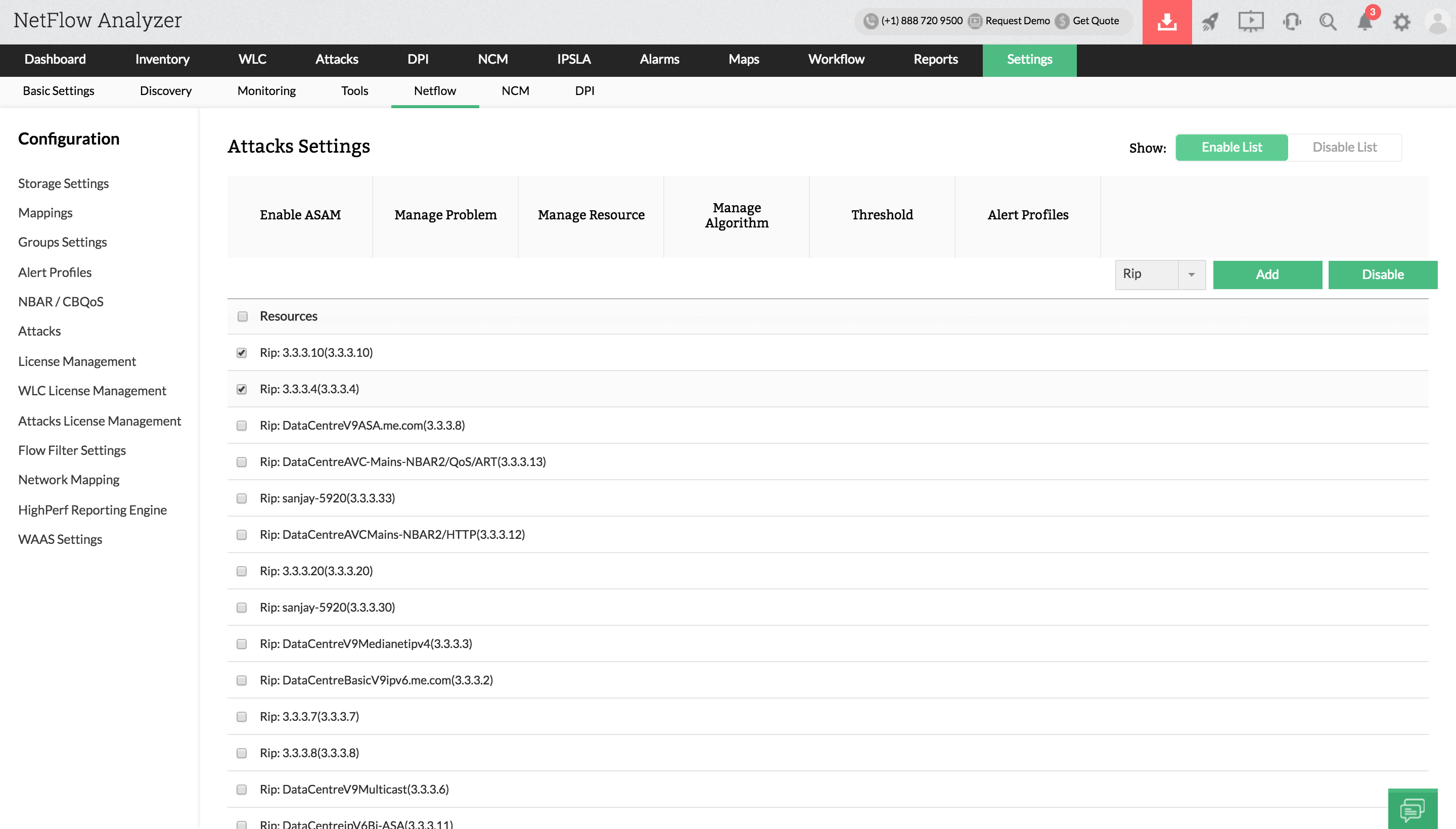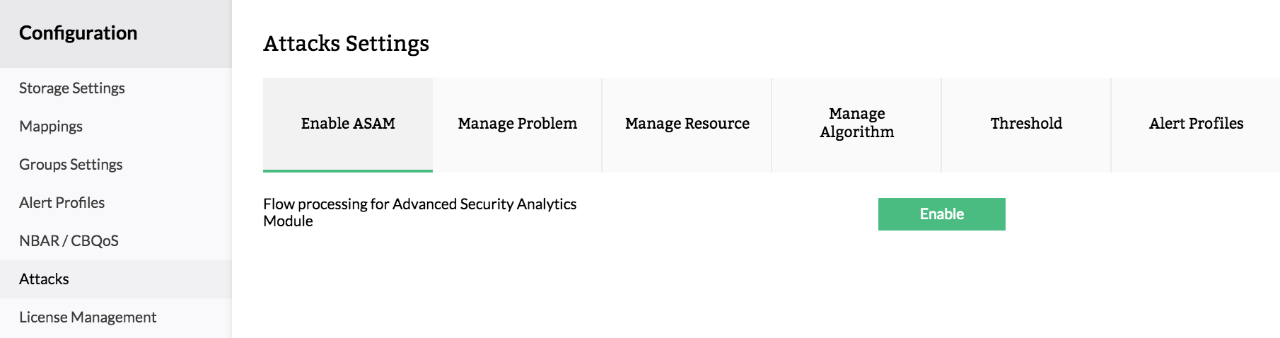 高级安全分析模块(ASAM)是NetFlow Analyzer中的一个选件。您可以从“设置”中启用ASAM。