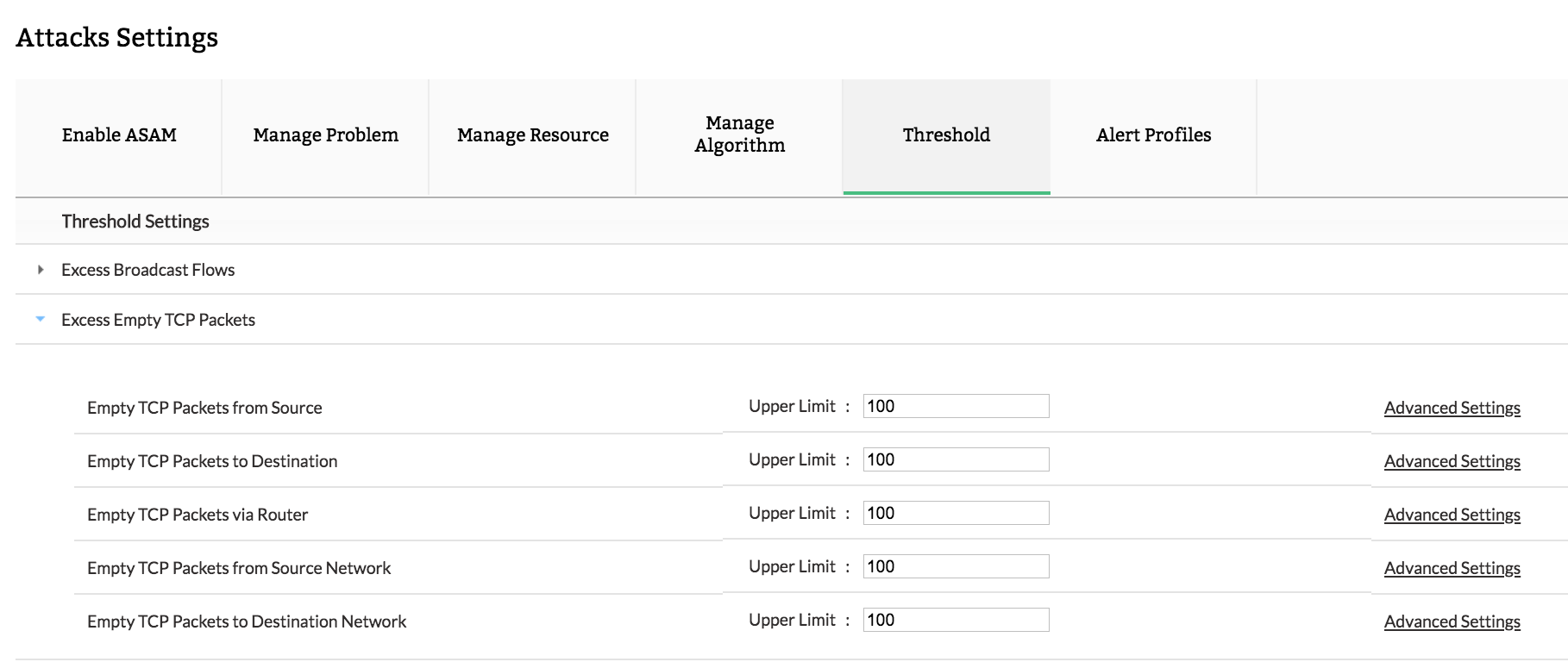 ASAM预定义了每个问题级别及其分类的阈值。可以从“设置”中编辑每个问题类型的阈值。