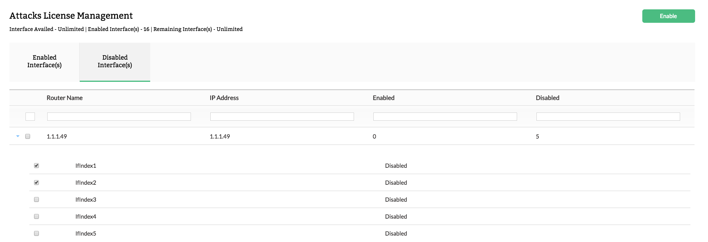要禁用接口,从"启用接口"中选择接口。