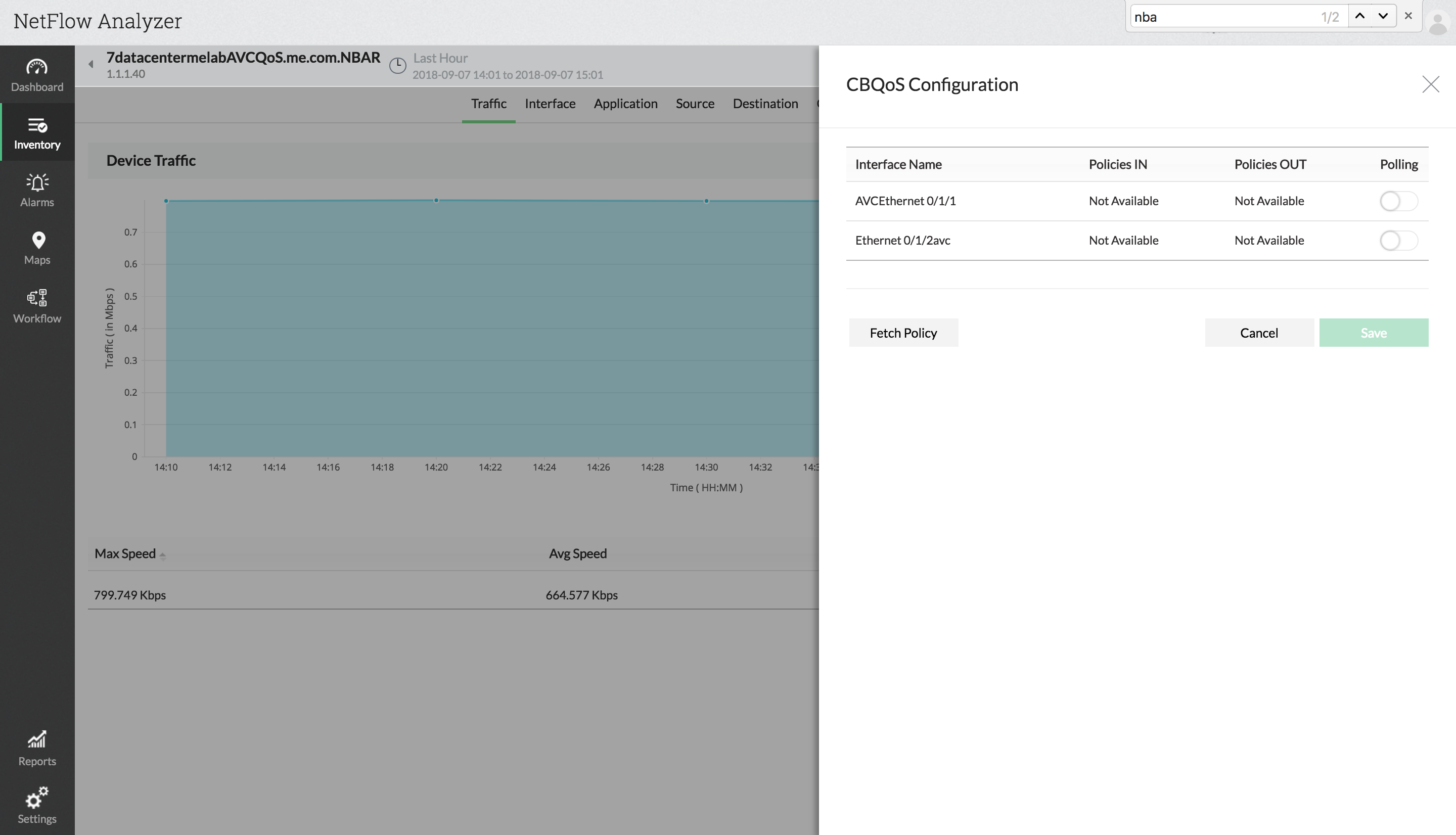点击菜单图标(右上方绿色方块) > 配置CBQoS > 获取策略 > 启用轮询。