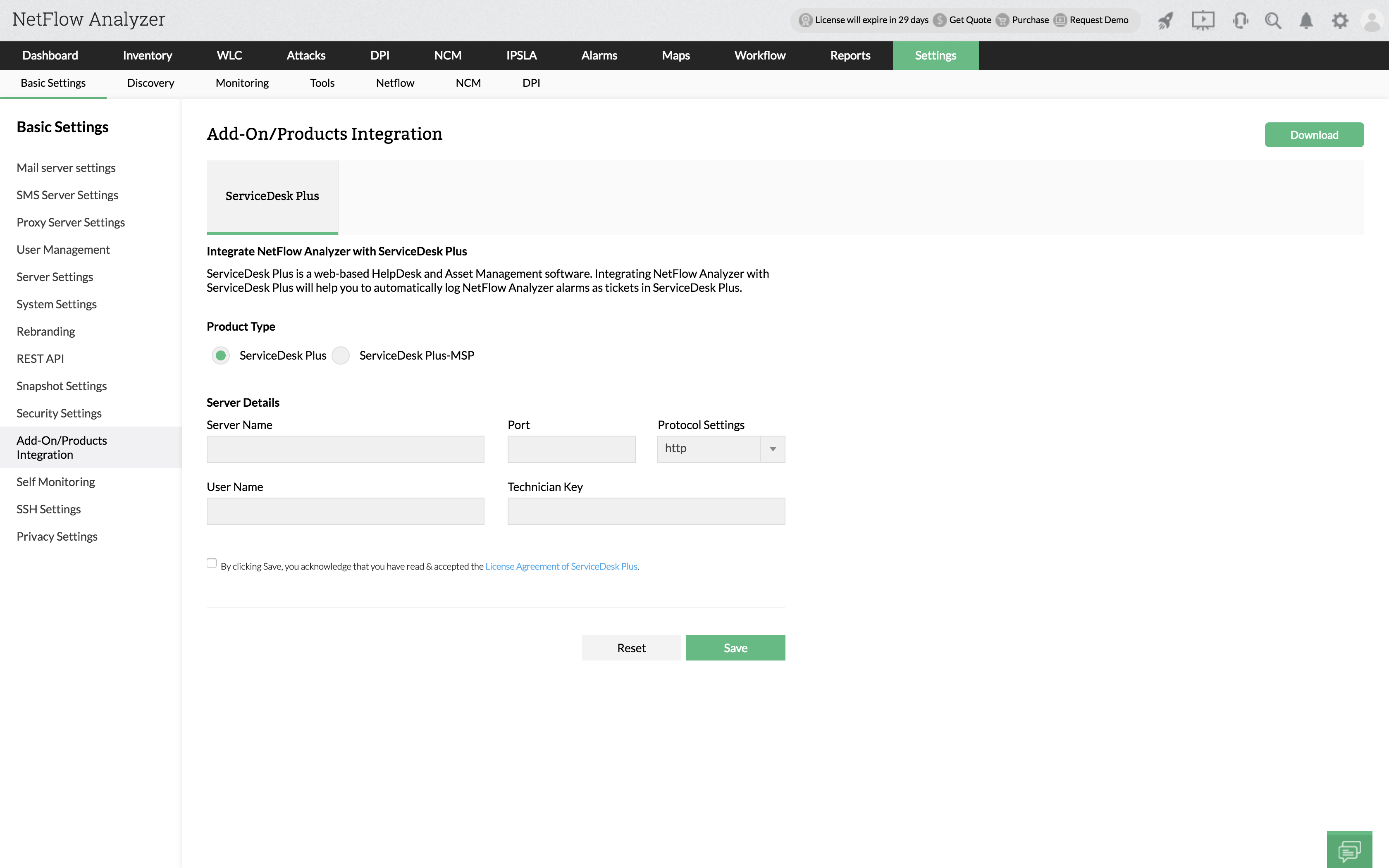 设置→基本设置→附加组件/产品集成→ServiceDesk Plus
