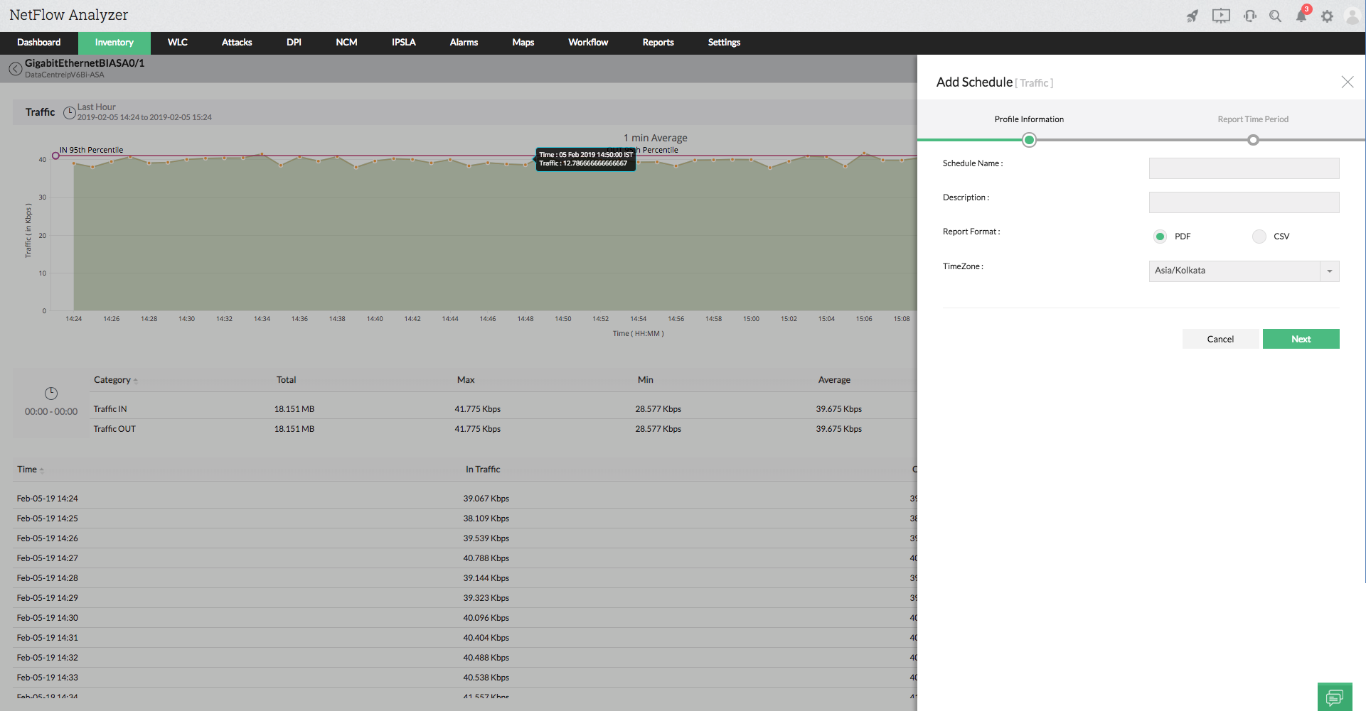 点击特定流量图以获取计划选项:流量/源/目标/QoS/会话。