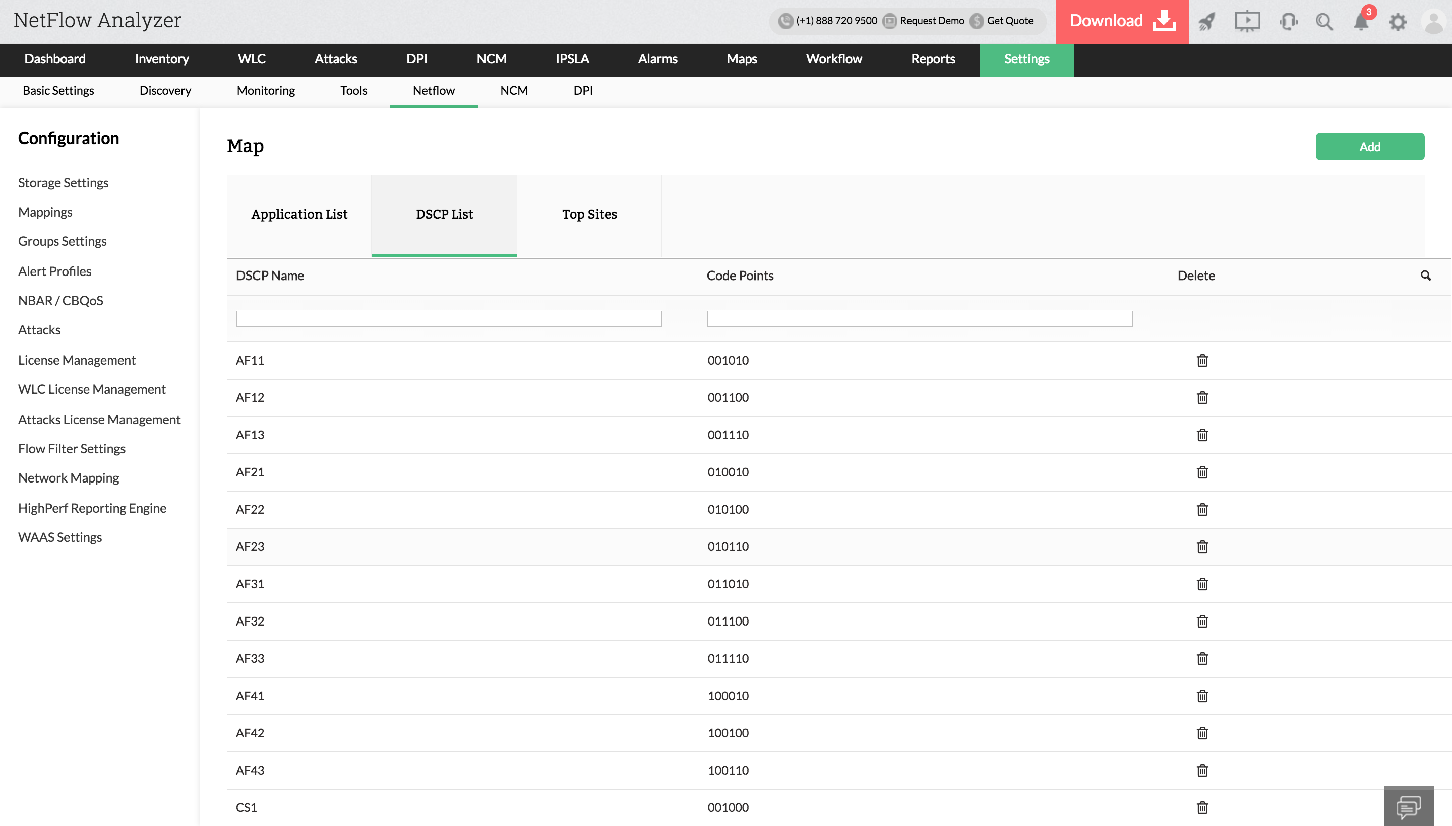 | DSCP 映射 | 在NetFlow Analyzer中添加DSCP代码点以查看定义的QoS流量 |