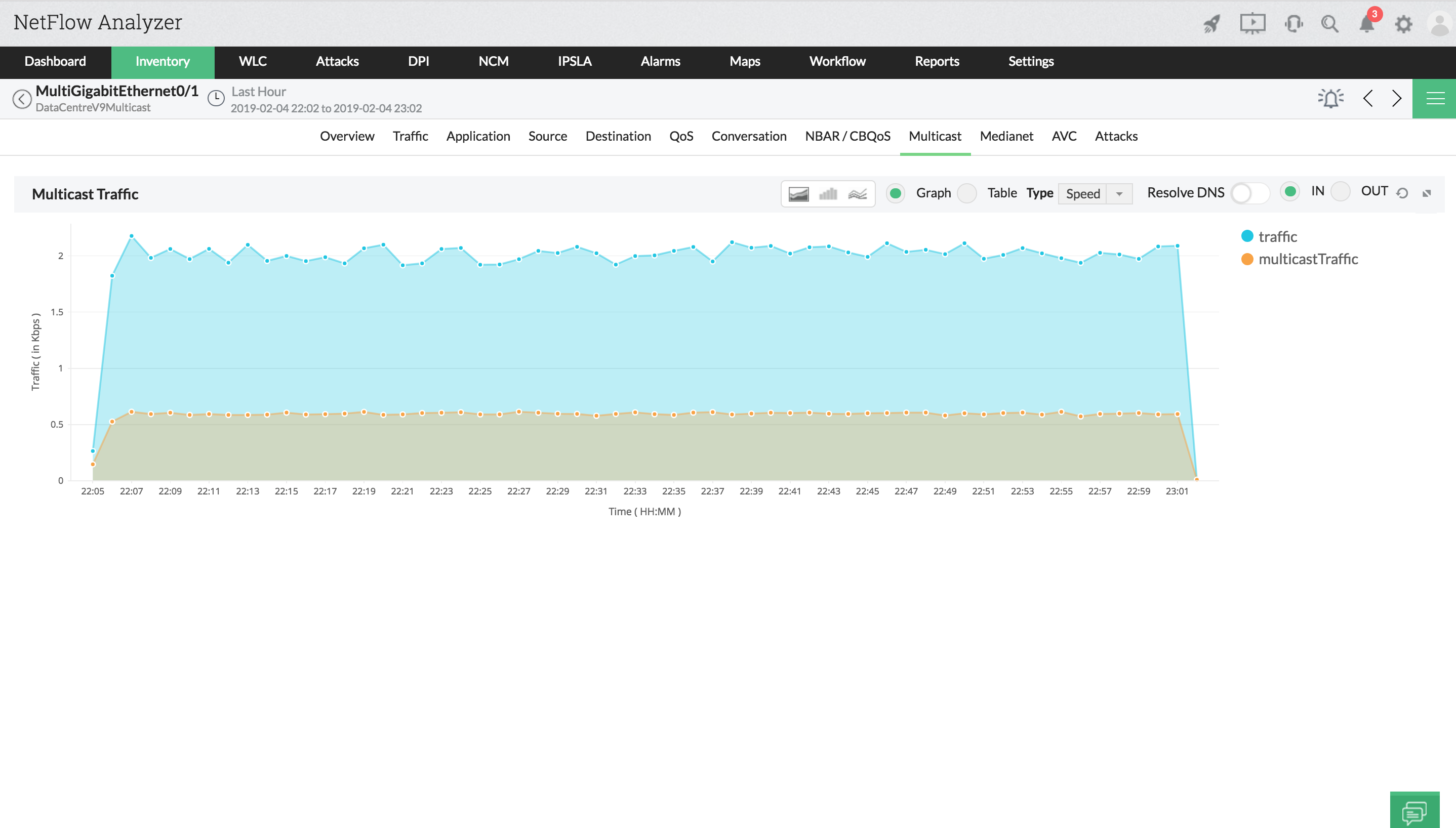 NetFlow Analyzer可以显示通过接口的多播流量信息。 此选项需要在设备中添加配置才能导出多播流量信息。