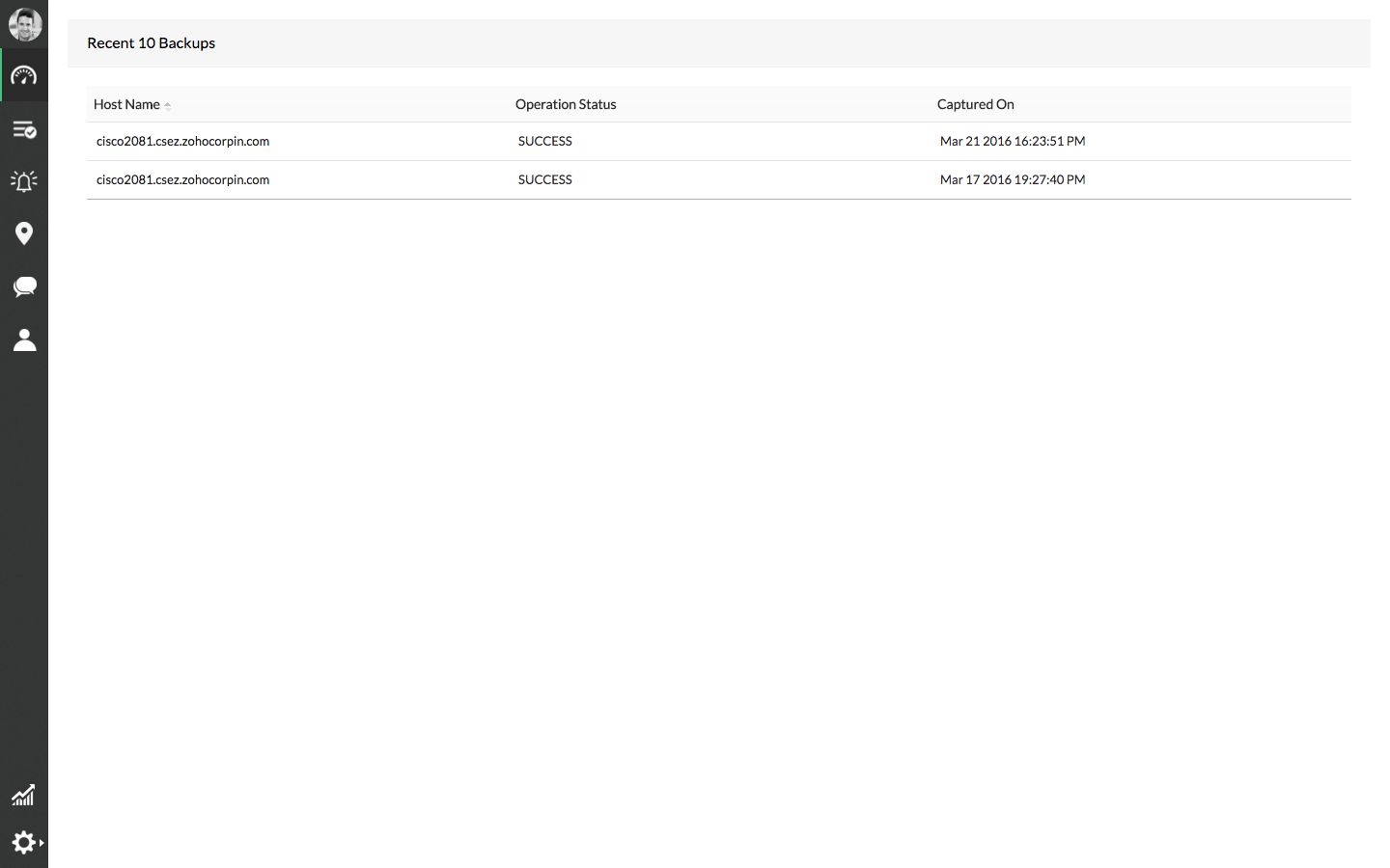 推动定期备份,并在不登录终端设备的情况下还原配置。它通过SNMP、CLI和Telnet协议与设备通信来执行这些操作。这个过程非常快,可以帮助您轻松快速地管理配置。
