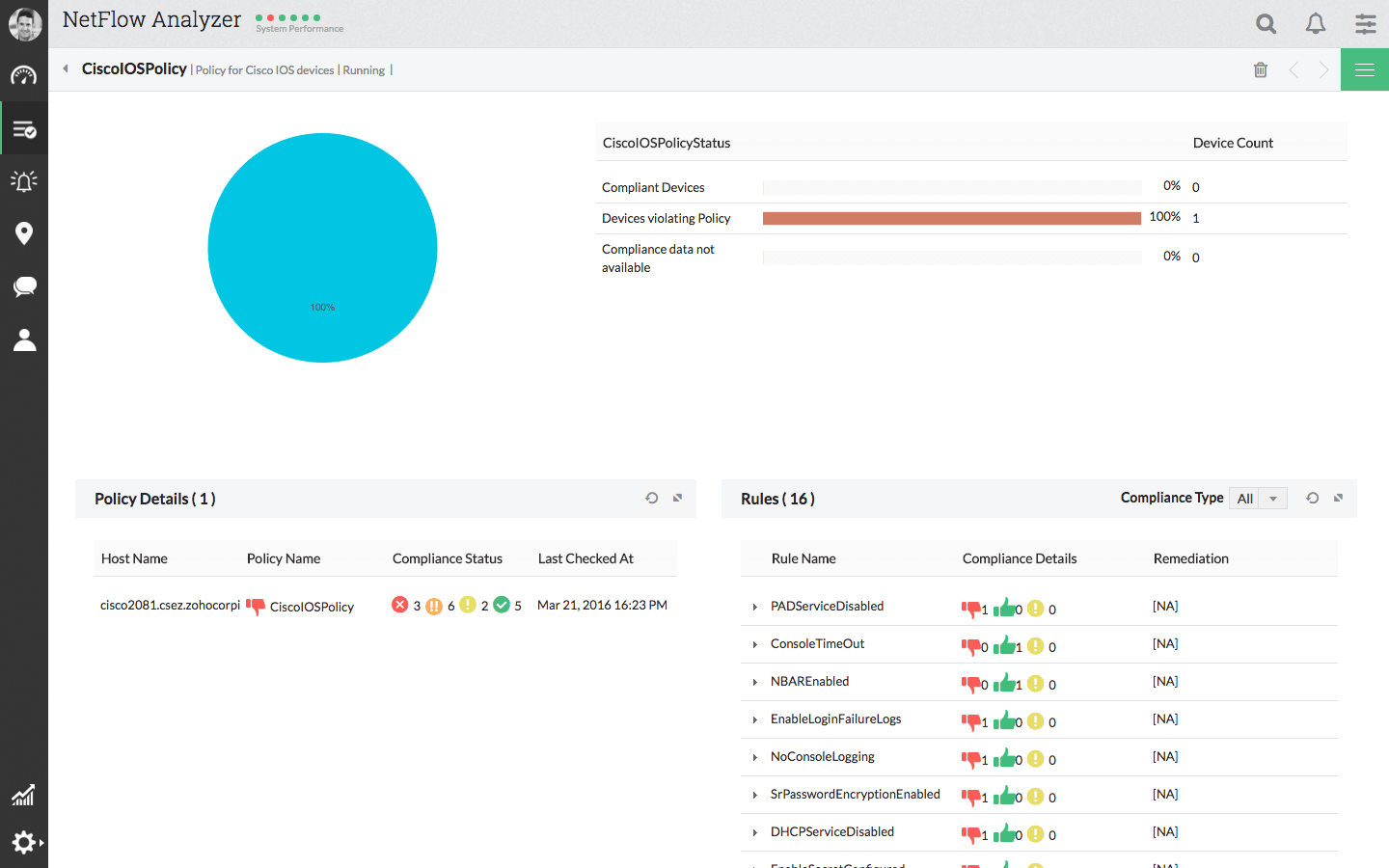 定义并执行确定存在或不存在某些字符串、命令或值的标准。NCM附加组件扫描配置,以确定是否符合定义的规则/策略,并报告违规行为。它还可以生成关于策略合规和违规的报表。