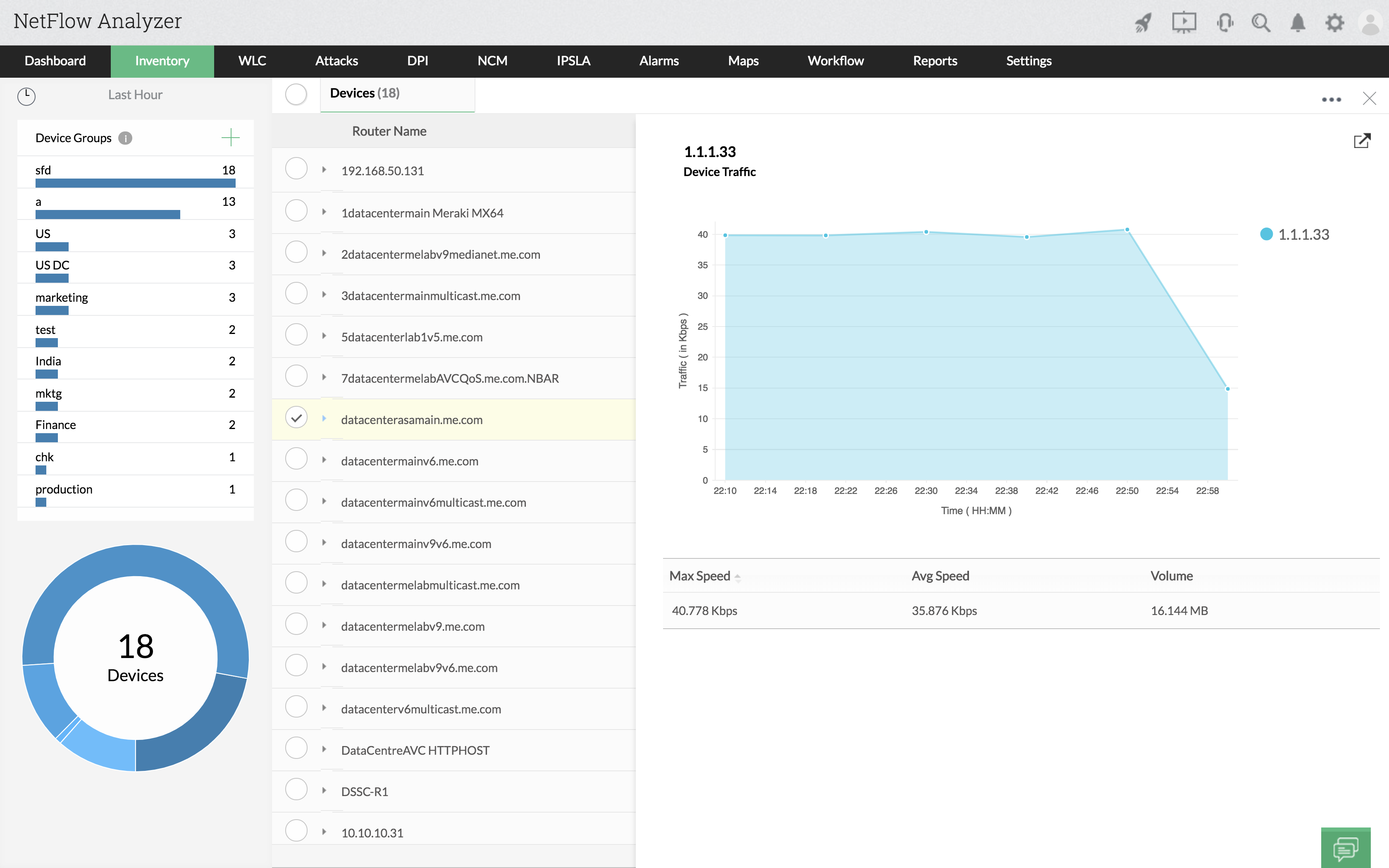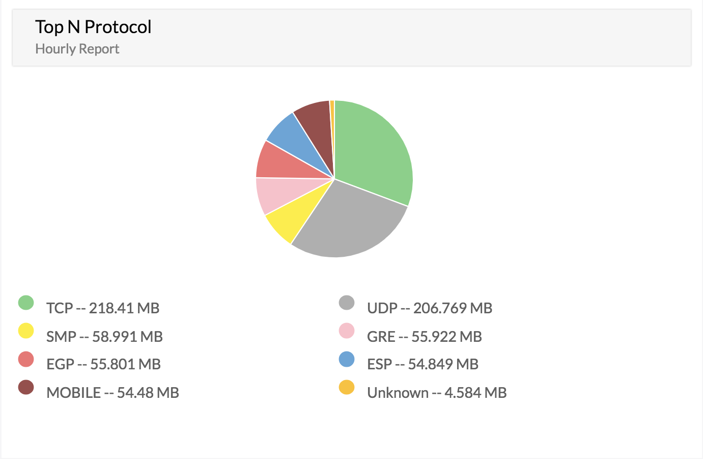 通过该表可以了解基于设备、接口或IP组的前10个协议及其使用情况。默认情况下,窗件将显示NetFlow Analyzer监控的所有设备的基于主要协议的信息。