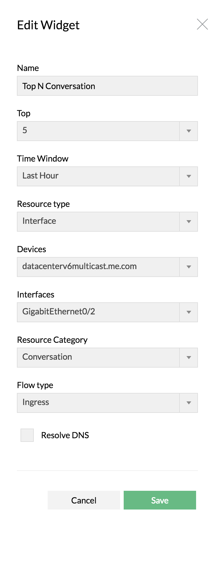 您可以通过点击窗件右上角的编辑图标,自定义窗件,来按照不同时间段查看基于接口或IP组的信息,如最近30分钟、每小时、6小时、24小时、今天和昨天。