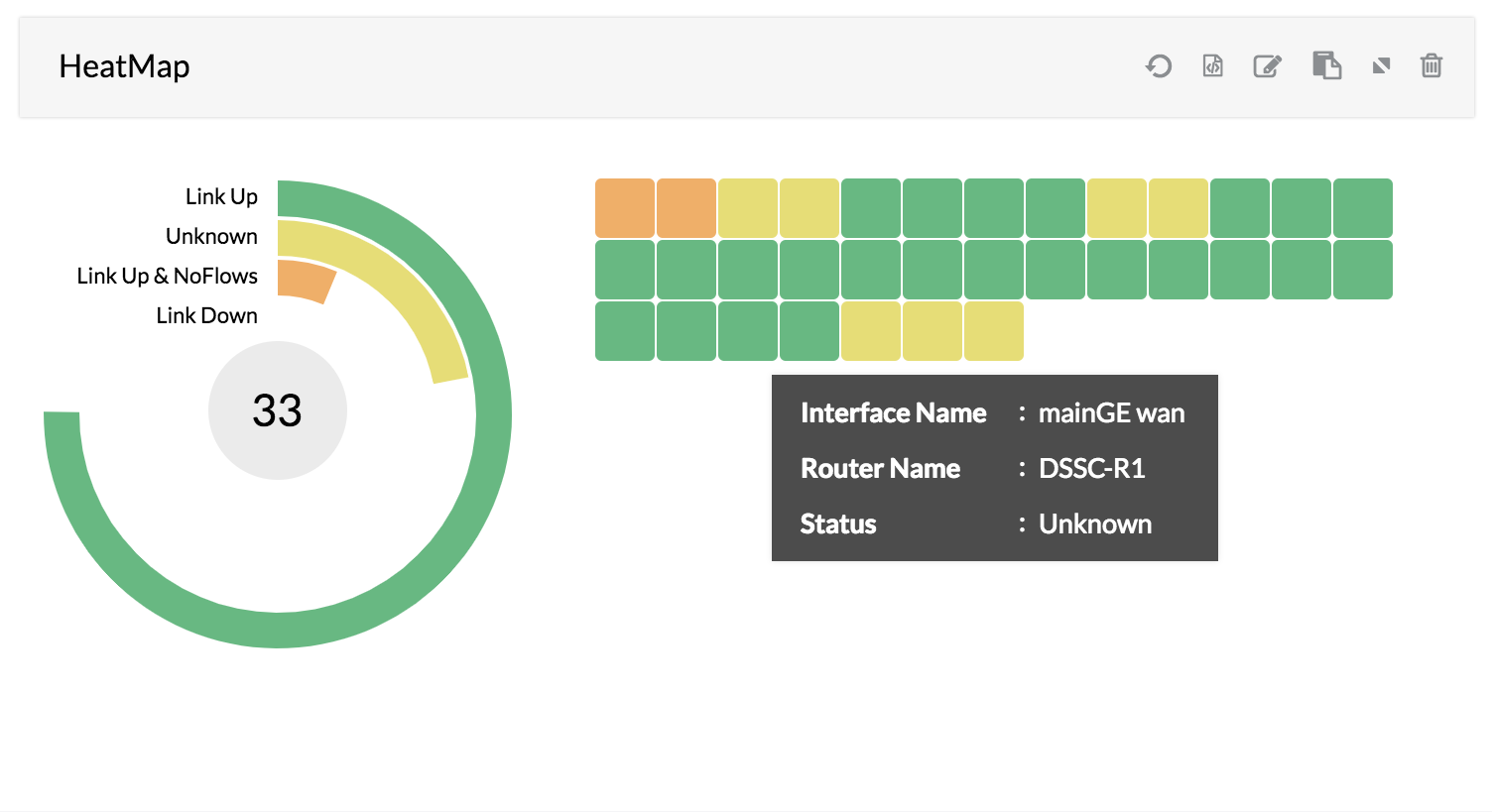 您还可以将鼠标停在热图上以获取接口详细信息、与其关联的设备以及该接口的状态。您甚至可以点击热图中的任意接口,进入该接口的详细信息视图。