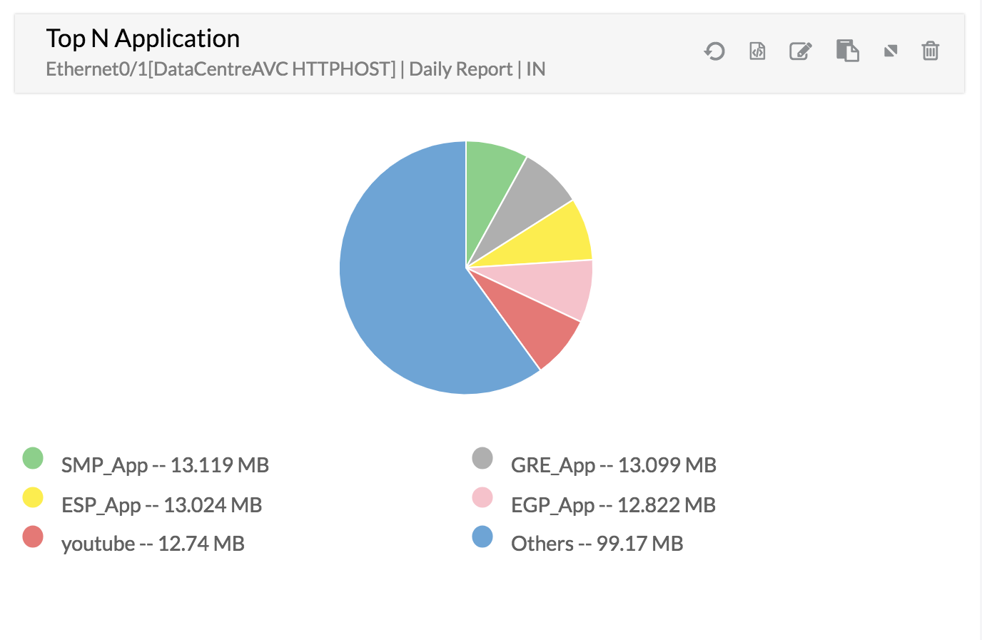 通过该表可以了解基于设备、接口或IP组的前10个应用程序及其使用情况。默认情况下,窗件将显示NetFlow Analyzer监控的所有设备的基于应用程序排名靠前的信息。