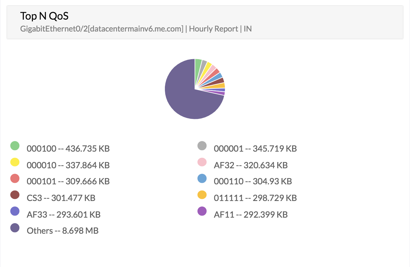 通过该表可以了解基于设备、接口或IP组的前10个DSCP及其使用情况。默认情况下,窗件将显示NetFlow Analyzer监控的所有设备的基于主要DSCP的信息。