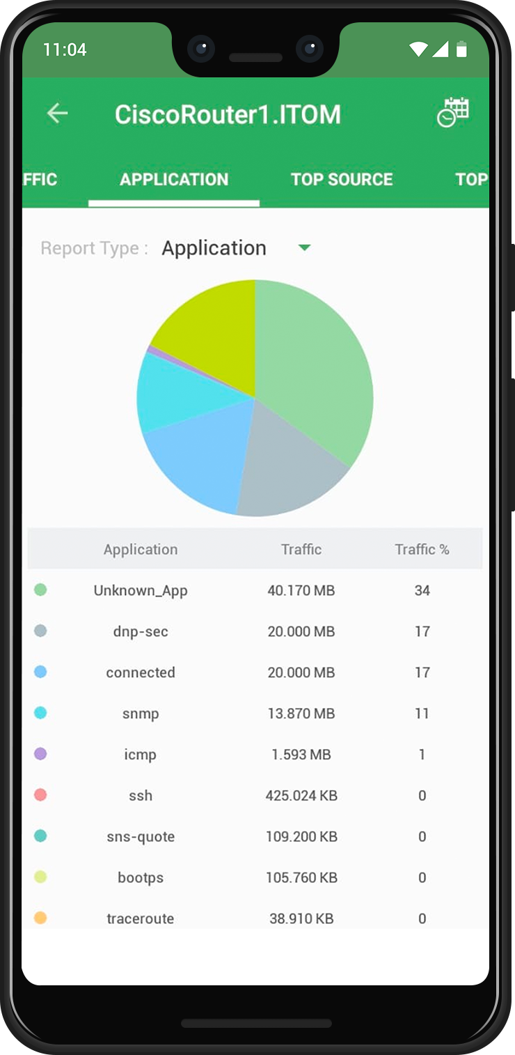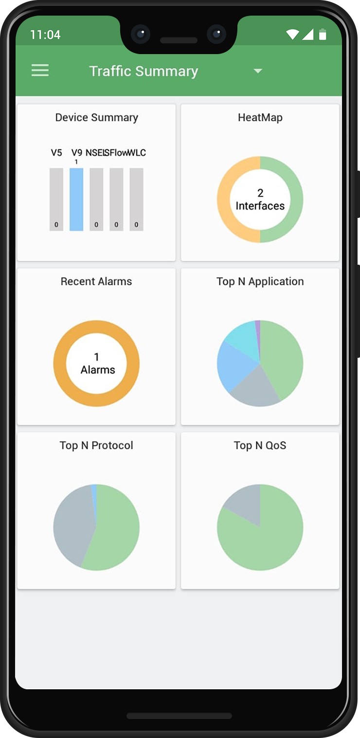 ManageEngine NetFlow Analyzer提供了网络设备、路由器、接口、局域网、广域网和应用程序的广泛视图。随着网络流量分析仪移动应用程序,诊断和解决问题,迅速从任何地方,任何时候。监视您的网络流量活动在实时,而不必绑定到您的办公桌上。