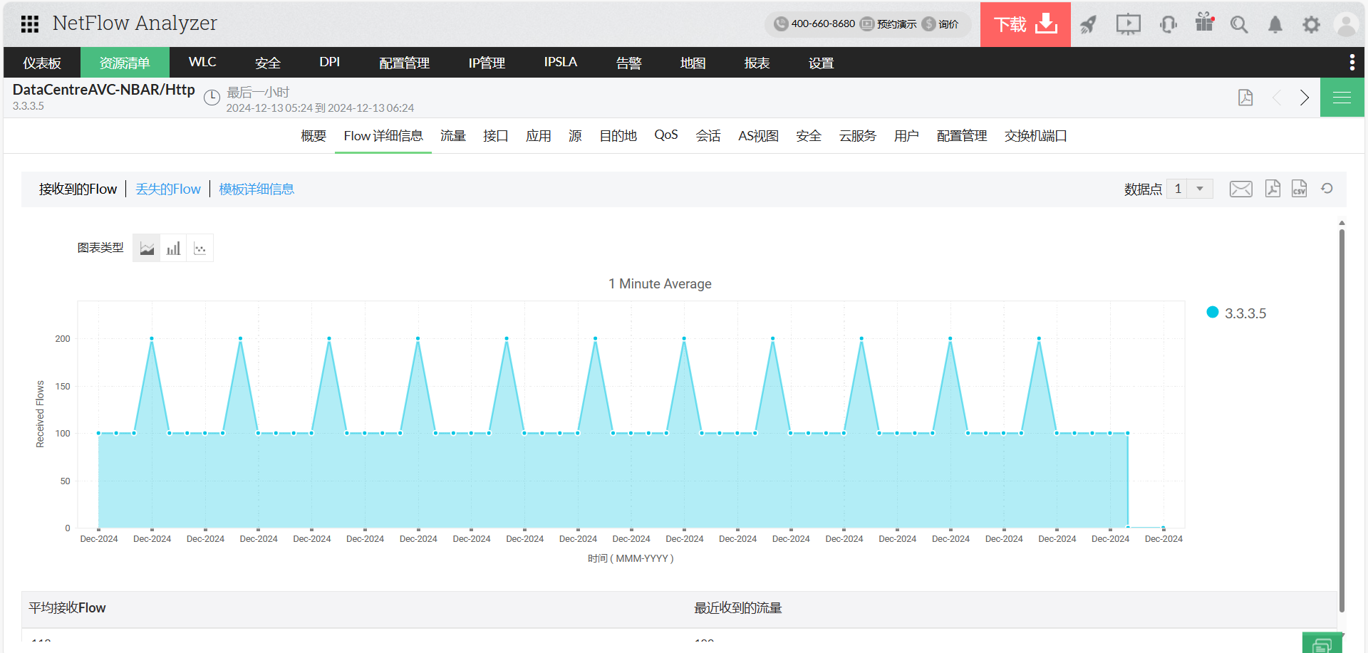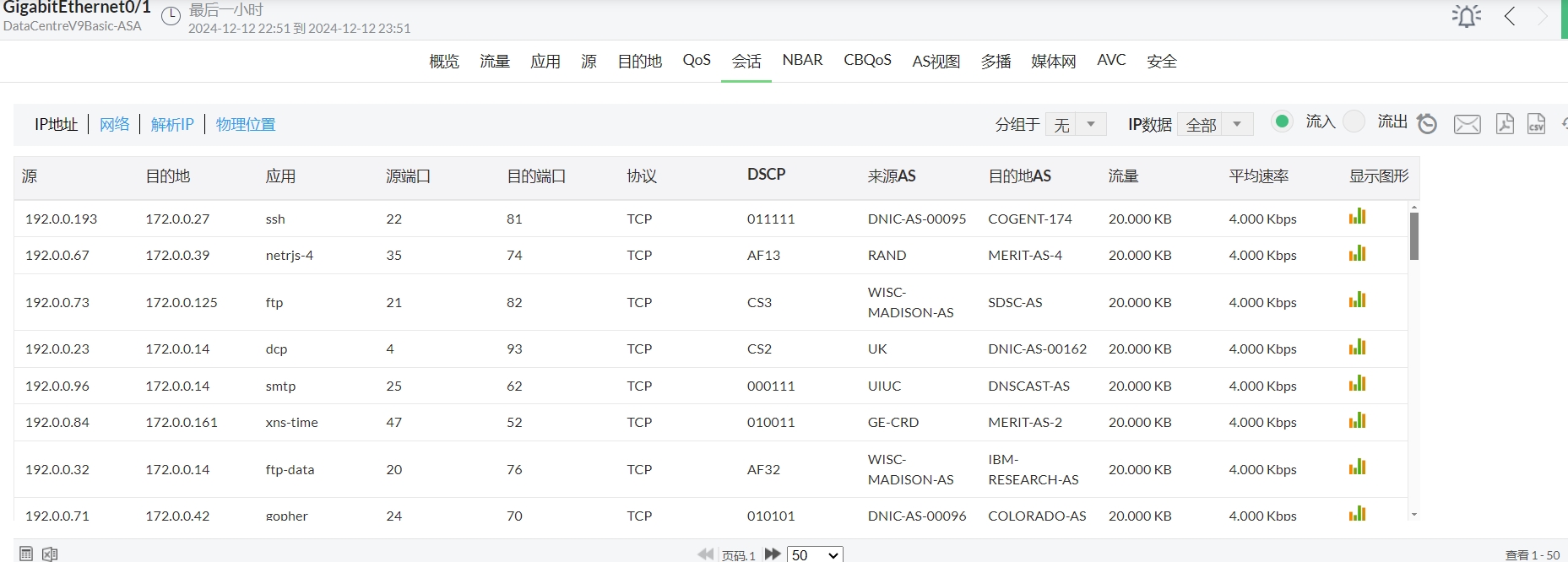 一旦收到NetFlow数据,就会生成显示该链接最近10分钟流入流出流量的图表.