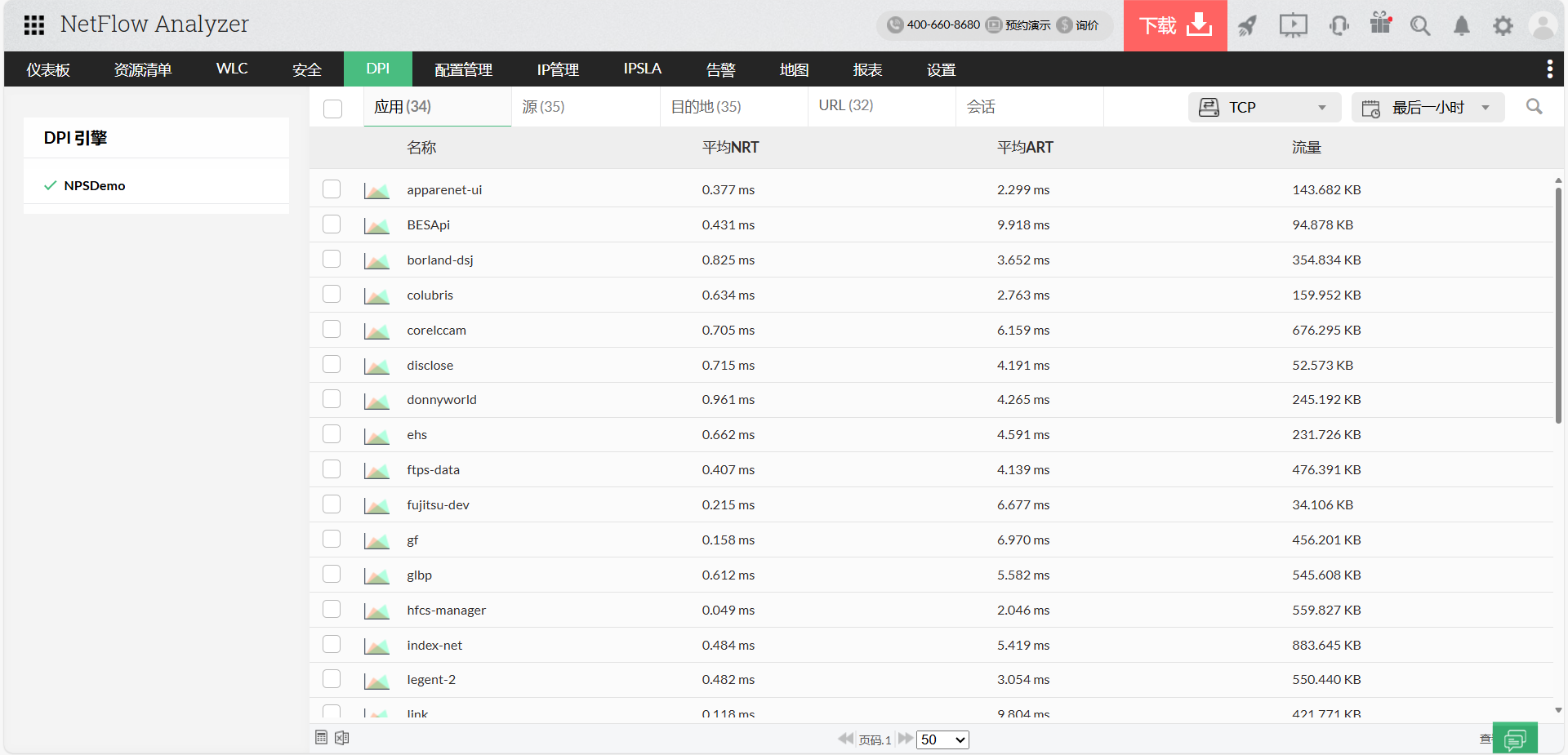 通过对网络协议分发的清晰了解,您可以看到网络中使用的所有应用程序及其相关会话。