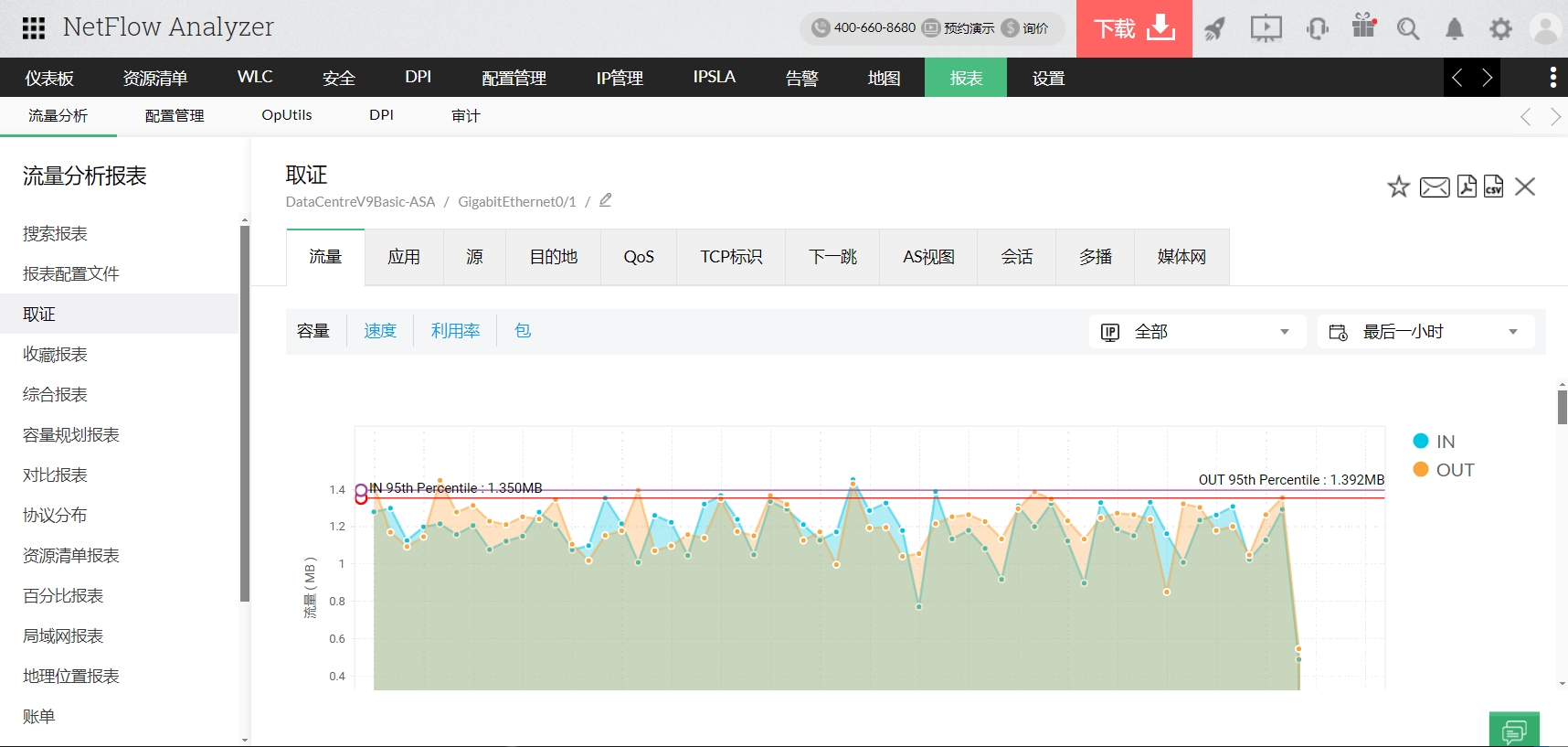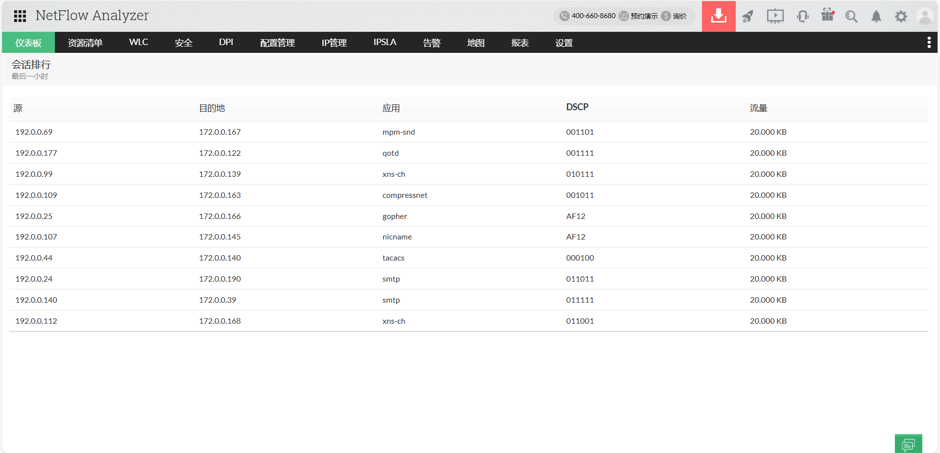 NetFlow Analyzer为网络管理员提供了大量可自定义的网络使用情况报告,帮助您跟踪网络使用情况和分析网络性能。这包括: