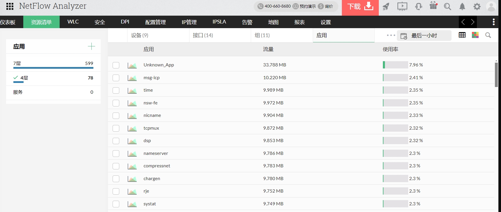 NetFlow Analyzer是一款集成在一起的NetFlow、sFlow、JFLow(以及更多) 收集器和分析引擎。NetFlow Analyzer是一款适用于windows和linux的软件,不需要任何硬件探头,可在您的网络环境中下载和使用,并可试用30天。查看以下有帮助的链接,以便更好地理解NetFlow Analyzer可以如何帮助您了解您的网络流量和带宽利用率。