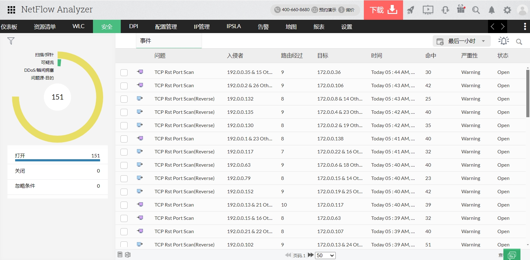 无论是银行还是教育机构,确保网络不受任何安全威胁和攻击总是重要的。此外,入侵技术在网络中的不断发展使得监控网络安全以获得网络的整体可见性变得非常重要。利用网络流分析器中的ASAM,您可以将威胁分类为问题,并确定网络中的主要罪犯和目标。