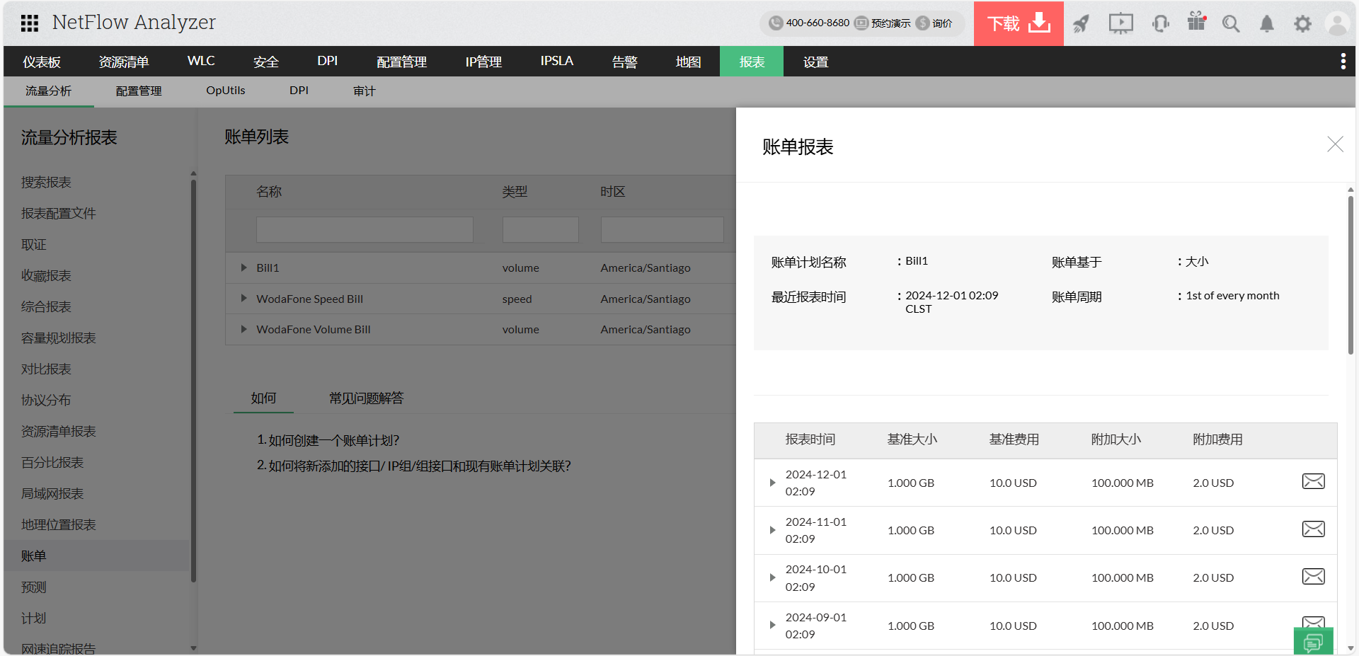 你的ISP收取的带宽费用取决于你的计划和使用情况。现在,您可以创建自己的法案报告与NetFlow分析器。根据您的计费计划和计费周期生成月度或季度账单报告。这些账单可以定期生成和通知,用于记账和退款。