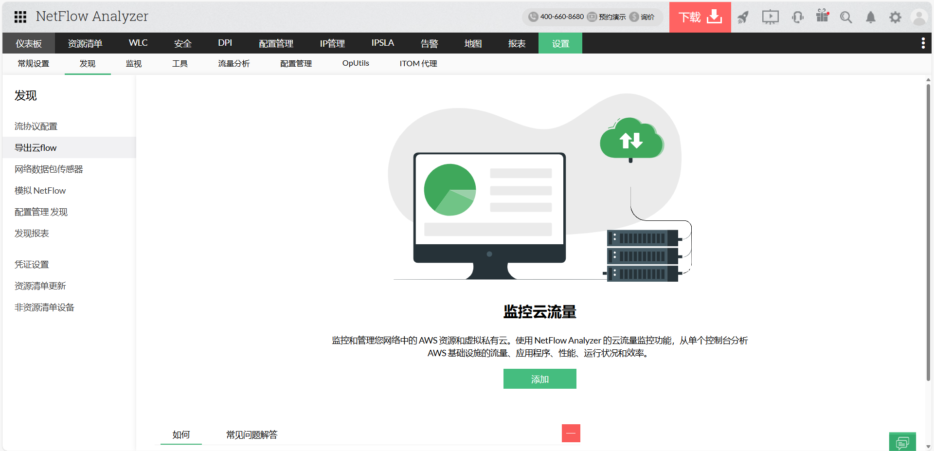 在使用任何监视工具之前,最大的任务之一就是根据您的需求来设置它,这非常耗时。在NetFlow Analyzer中构建模板有助于快速设置和导出流这样的净流,sFlow,jFlow等。从你的网络设备。与手动登录路由器或交换机不同,预定义的配置文件可以帮助您从GUI中发现设备,只需3个简单步骤。大量发现设备的选项简化了配置工具的自动化过程并节省了时间。