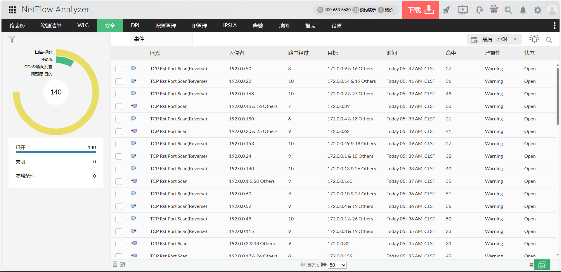 先进的安全分析模块是一个网络异常检测工具,有助于检测各种威胁,包括零天网络入侵使用国家的最先进的连续流挖掘引擎技术,这有助于监测广泛的内部和外部安全威胁。