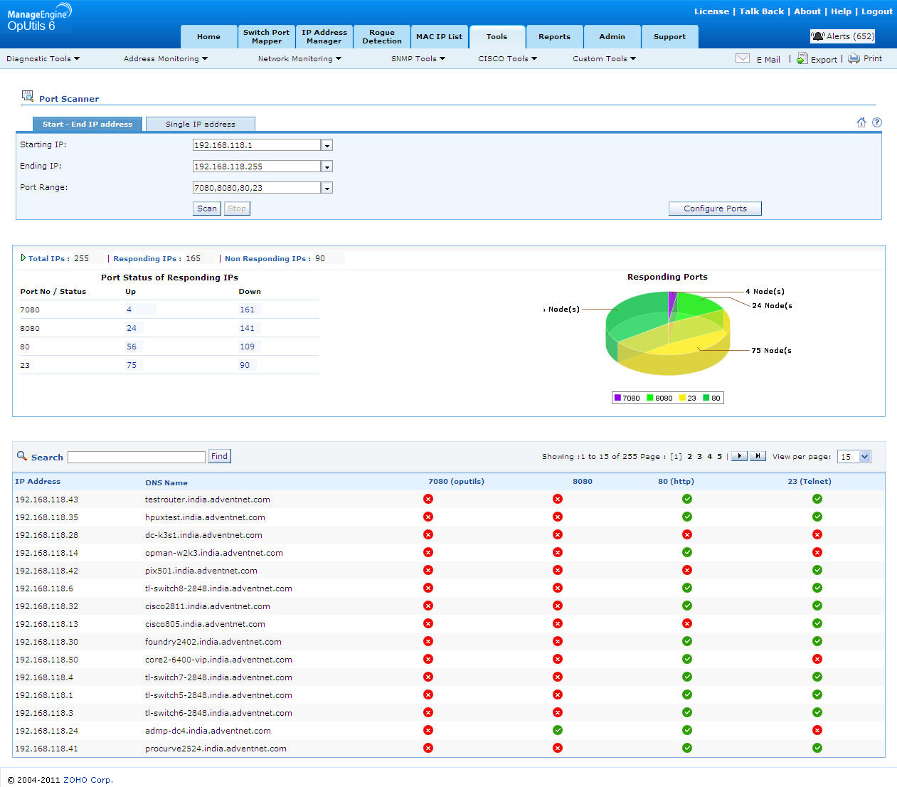 ![]() | Switch Port Mapper This helps network engineers identify the switch port to which a device is connected and thus eliminates the need of manually tracing the network cables. The tool discovers the devices plugged into each port of a specified switch. The tool is useful for system and network engineers to gain visibility into the IP, MAC, status and availability of ports. Since this is a real-time discovery you can also view the operational status and speed of each port. This tool maps switch ports to the devices connected to them. | |