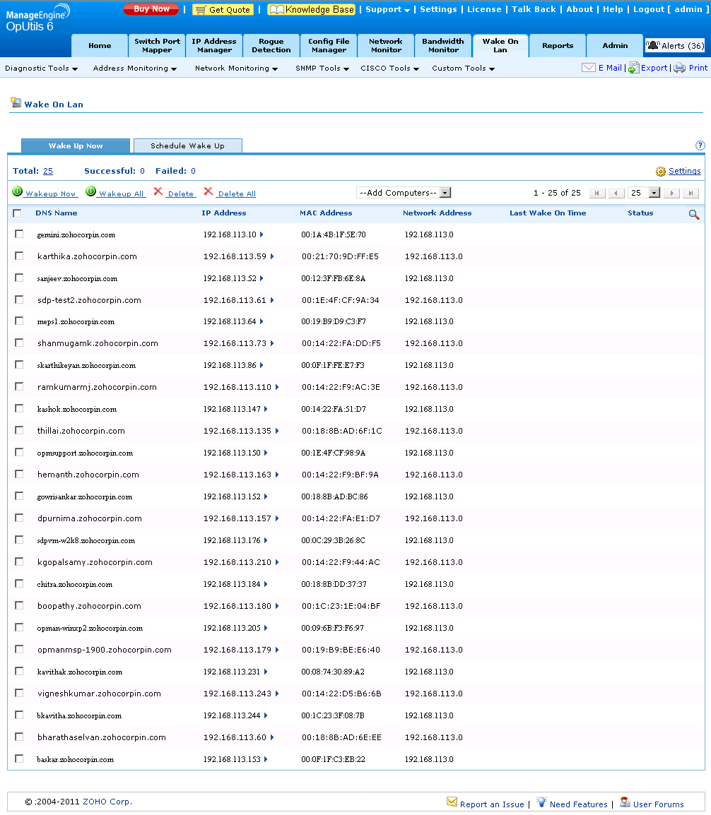 Wake-On-LAN This tool remotely 'wakes-up' a machine (boots-up a machine) that is present in the network but not alive. For the tool to work, the PC should be configured to accept the Wake-On-LAN remote command. | ||