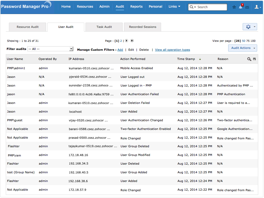 审计跟踪有助于取证调查,因为所有活动审计都附有时间戳、用户提供的操作原因和用户访问应用程序的IP地址。有了这些信息,可以轻松了解到谁用密码在何时何地进行了哪些操作。