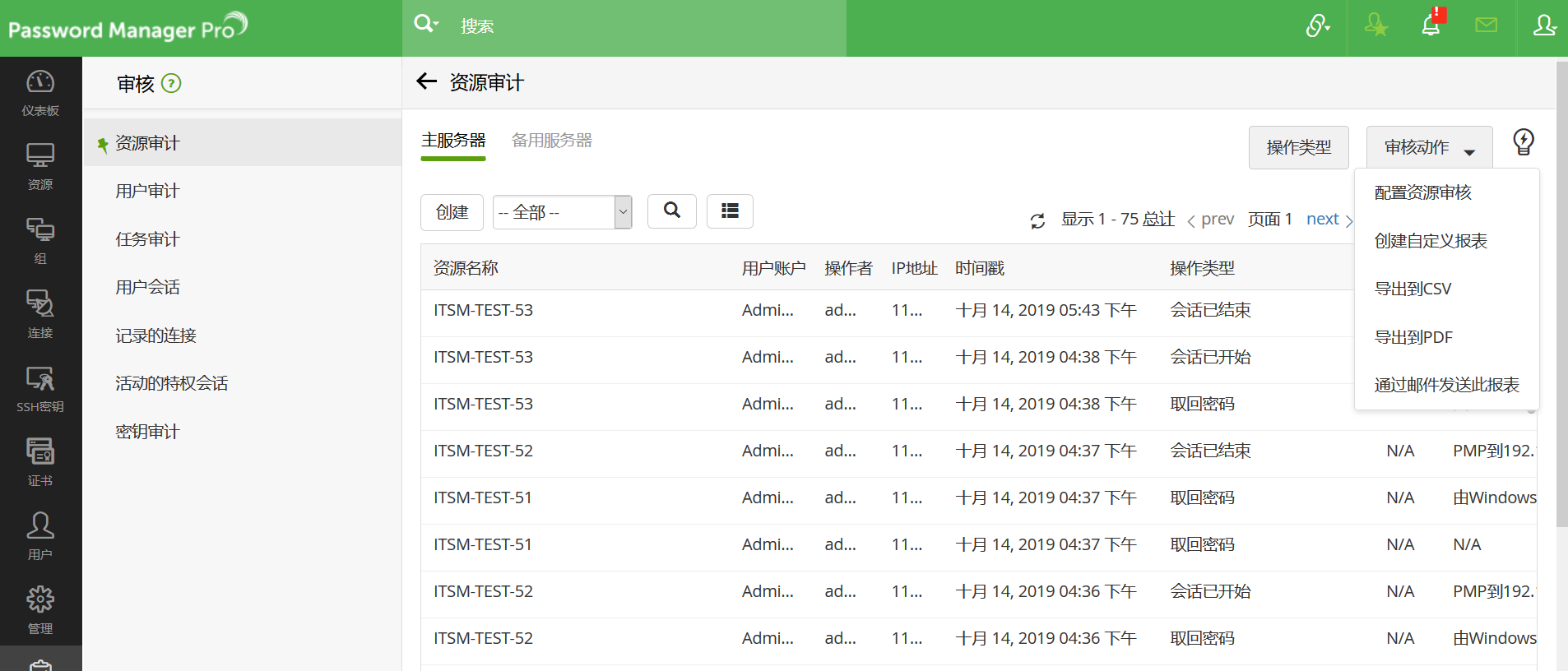PMP允许授权管理员将审计日志导出为CSV和PDF文件。您还可以将记录合并为报告,并将其发送给选择的收件人。