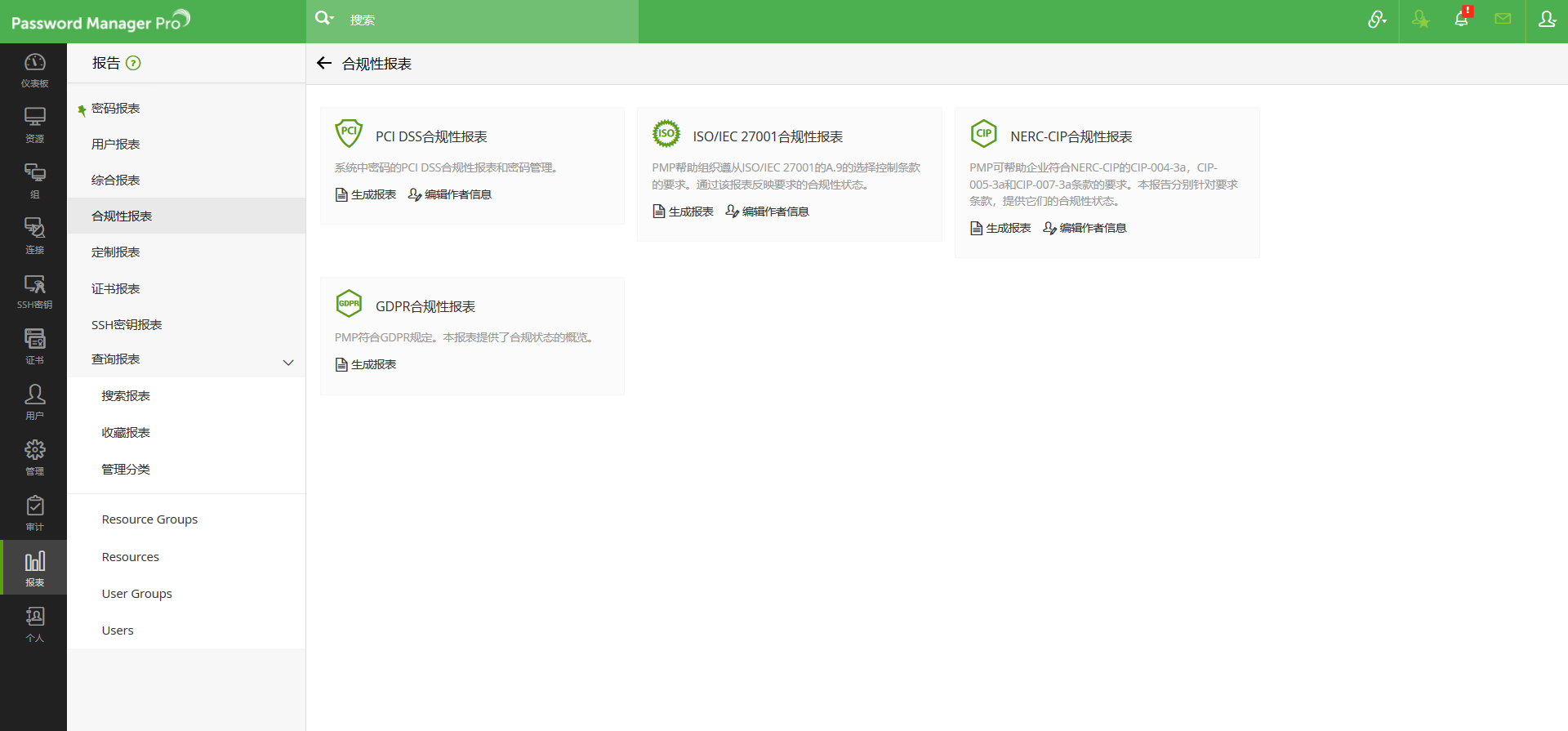 Password Manager Pro(PMP)作为保护特权帐户和管理远程访问的完整解决方案,帮助组织通过强大的存储机制、完善的用户身份验证制和配置来实现IT合规性。它还提供了细粒度访问控制、自动密码重置、特权用户活动监控、检测功能和抗抵赖测量方法。